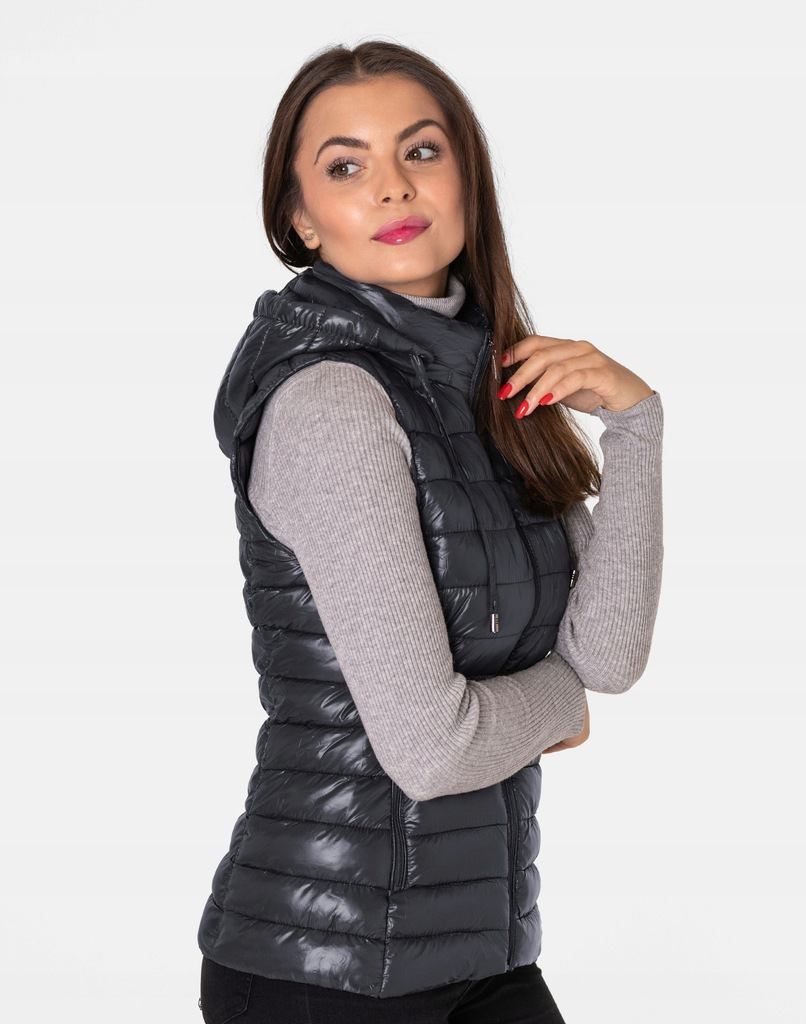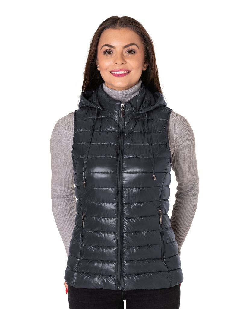 Ciepła Puchowa Kamizelka Damska Ocieplona Bezrękawnik z Kapturem 9138-2 S