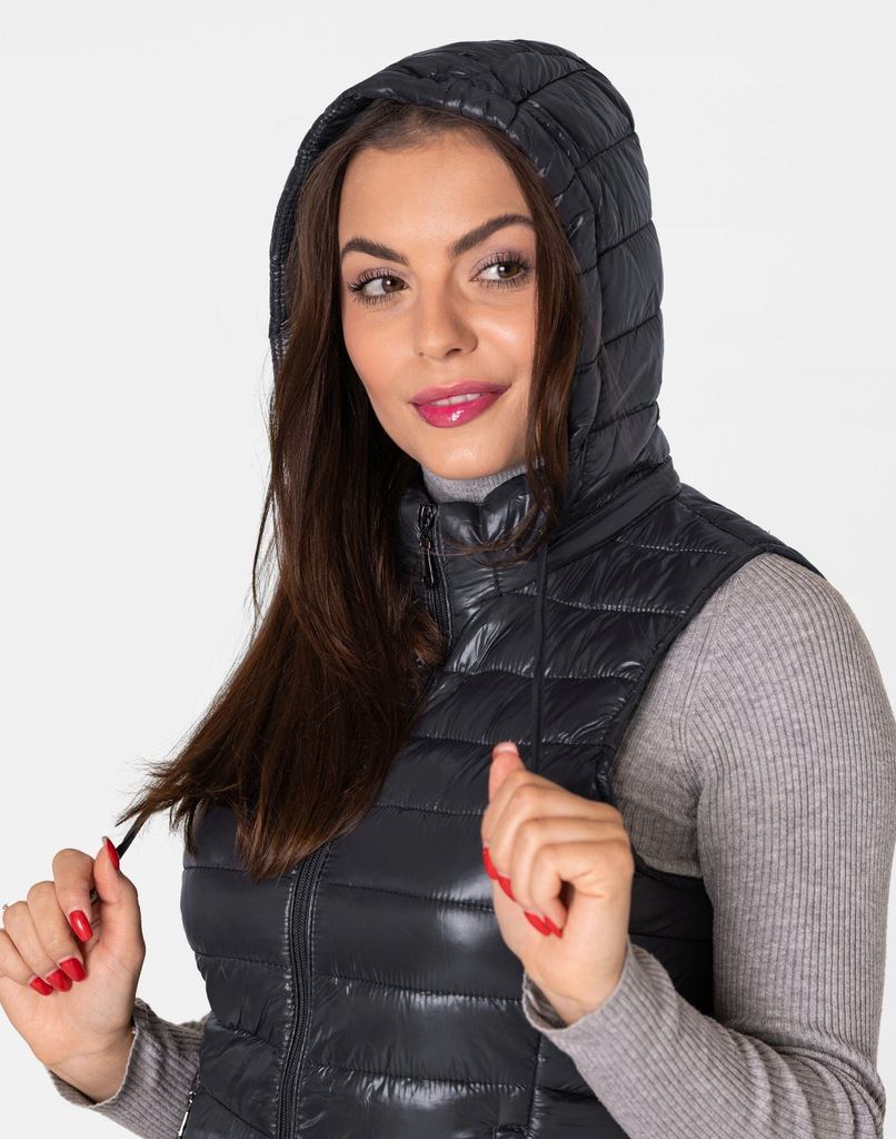 - Fason: kamizelka puchowa z kapturem