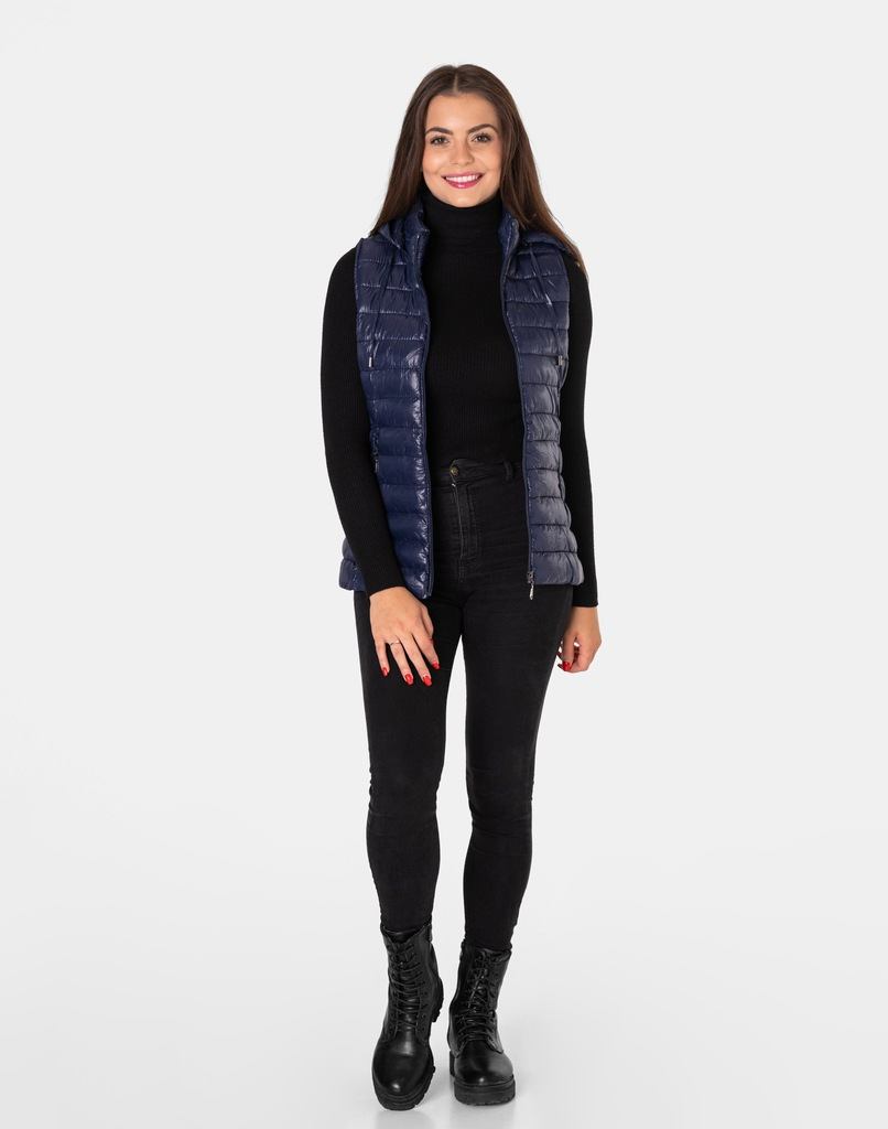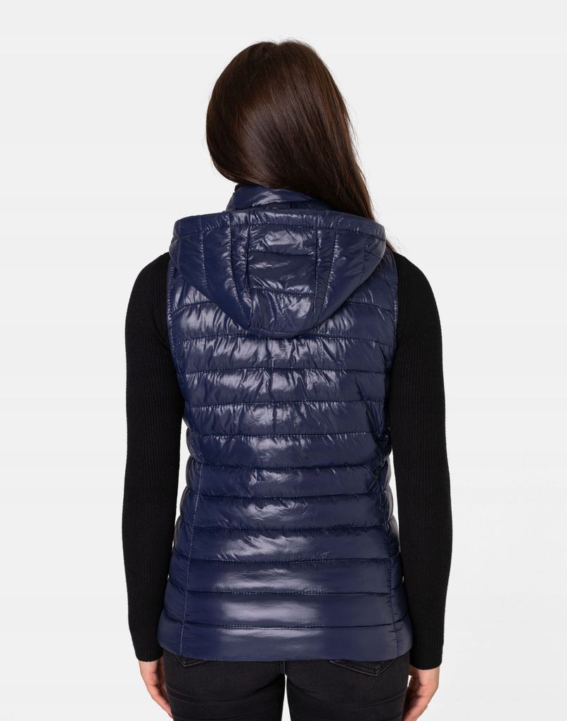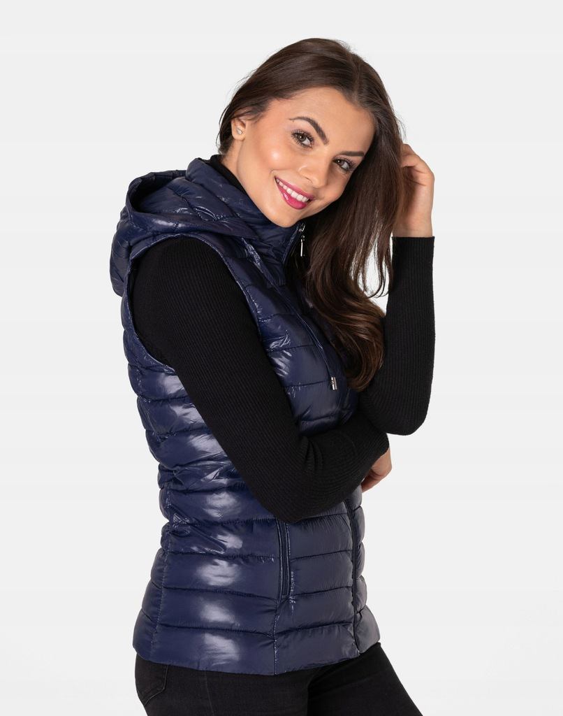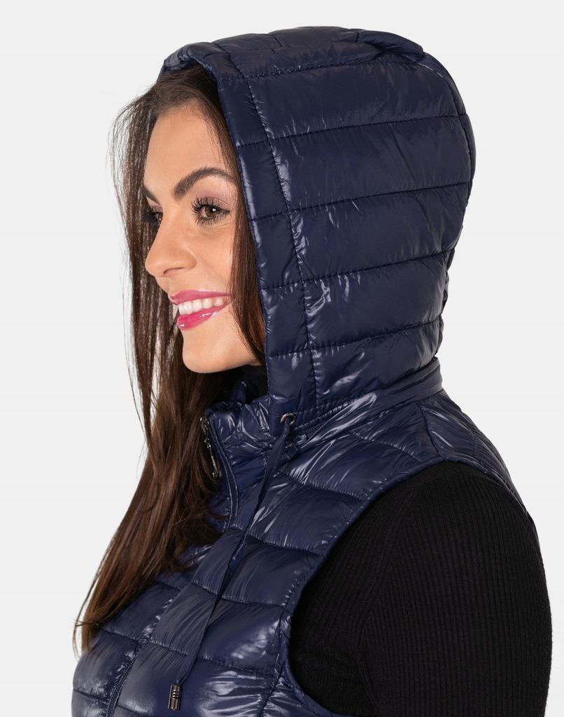 - Fason: kamizelka puchowa z kapturem