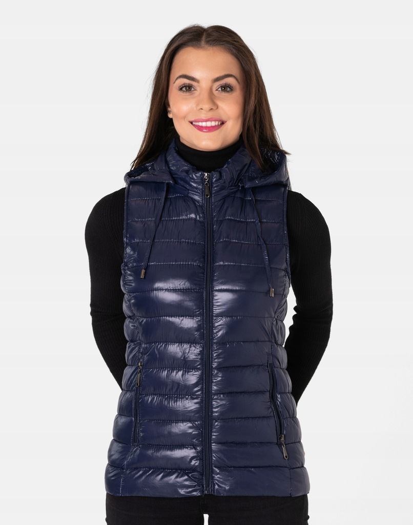 - Fason: kamizelka puchowa z kapturem