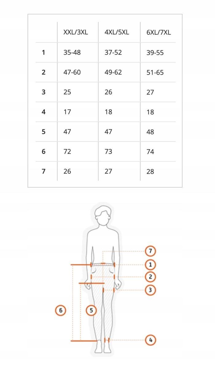 Proszę nie sugerować się rozmiarem podanym na metce przez producenta (np: XXL/3XL, 4XL/5XL, czy 6XL/7XL itp.) ponieważ różne firmy stosują bardzo różne oznaczenia rozmiaru na co my jako sprzedawcy na Allegro nie mamy żadnego wpływu. Najlepiej jest zmierzyć się dokładnie centymetrem a następnie porównać swoje wymiary z tabelą wymiarów podaną przez nas na aukcji i wybrać odpowiedni rozmiar.