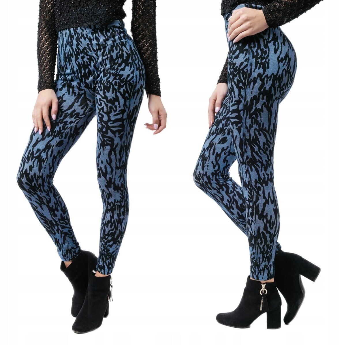 Legginsy damskie efektownym drapieżnym nadrukiem w cętki typu leopard to komfortowo skrojony model z wysoką elastyczną talią i wąską, dopasowaną nogawką typu rurka,która nadaje im charakteru i co najważniejsze optycznie wysmukla i wydłuża nogi. Fason SUPER SLIM wyszczuplający linię pasa i bioder dzięki zastosowanej szerokiej modelującej gumie (elastyczny pas ściągający) wszytej w górnej części spodni. Elastyczne i przyjemne w dotyku, świetnie opinają ciało i modelują nogi. Z założenia wyróżniają się dużą wygodą a materiał charakteryzuje się dużą elastycznością oraz rozciągliwością w czterech kierunkach zapewniając doskonałe dopasowanie spodni do sylwetki. Nie mają żadnego zamka, guzików ani niewygodnych szwów a tkanina jest na tyle gruba, że nie widać przez nią bielizny. Trwałe i elastyczne wykończenie spodni (użycie do produkcji elastycznych nici) gwarantuje komfort i wygodę ich użytkownikowi w każdych warunkach. Możesz w nich chodzić na co dzień, idealnie nadają się również na wieczorowe wyjścia do klubu czy na szaloną imprezę z getrami w cętki typu leopard w roli głównej.