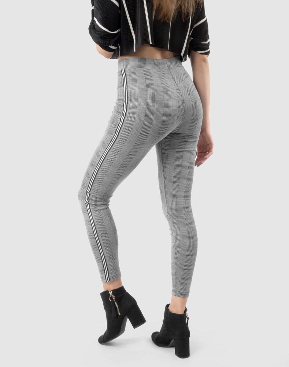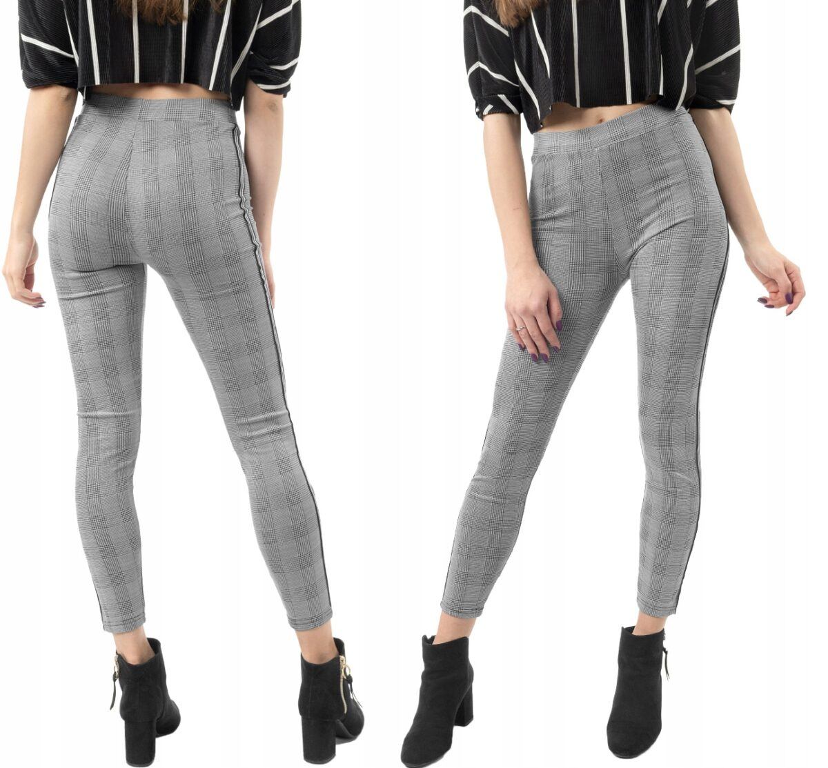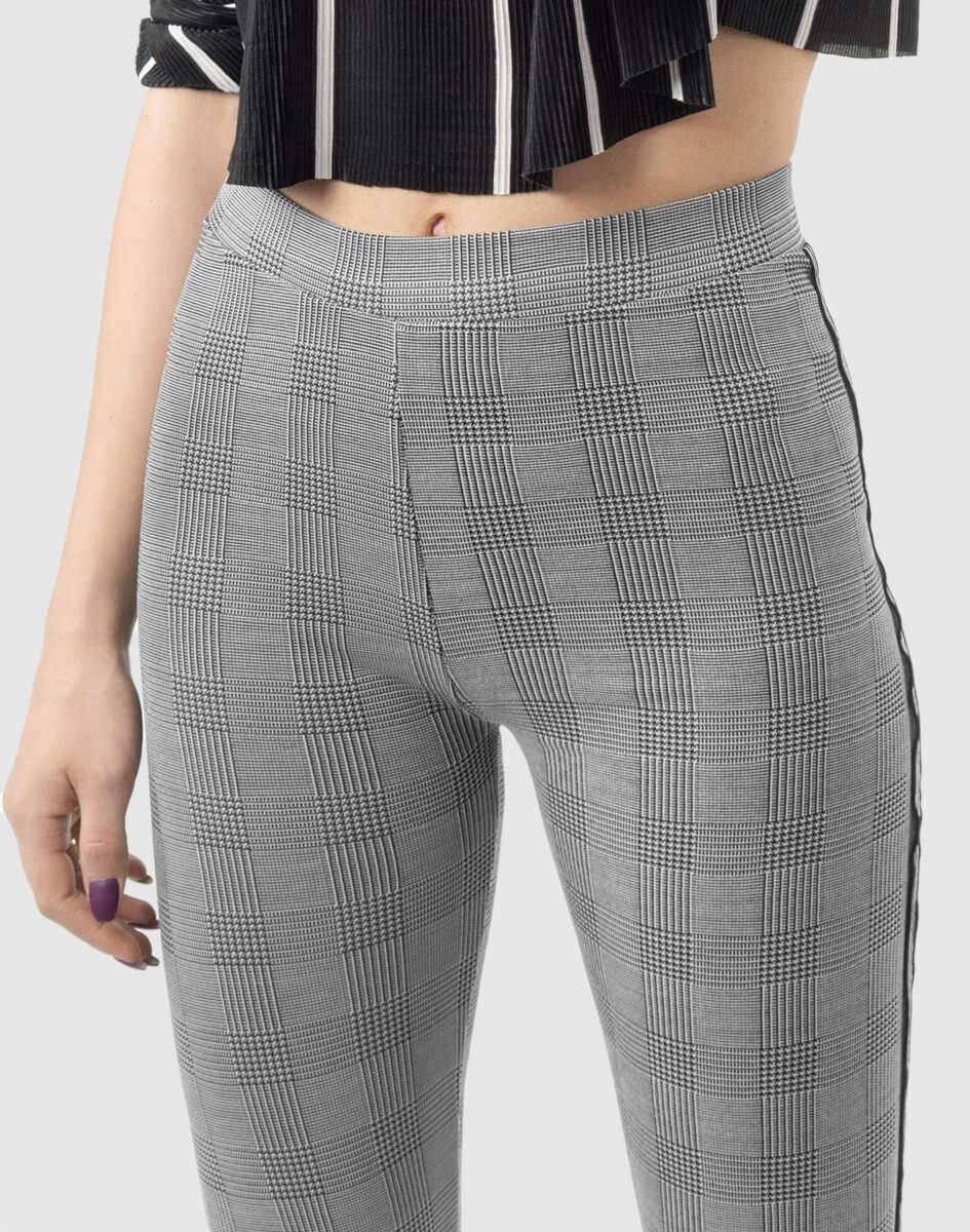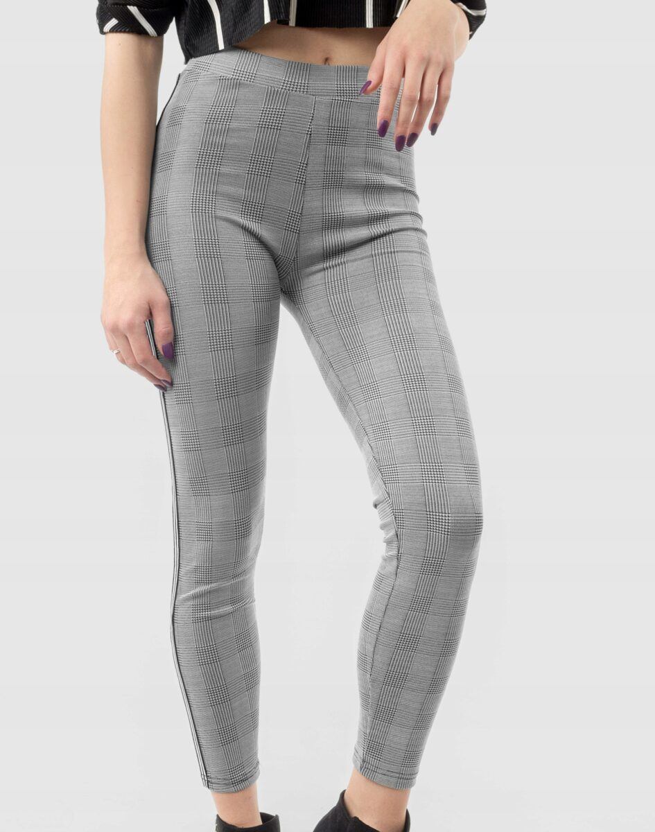 Eleganckie wygodne legginsy damskie w modną kratę z lampasami na nogawkach