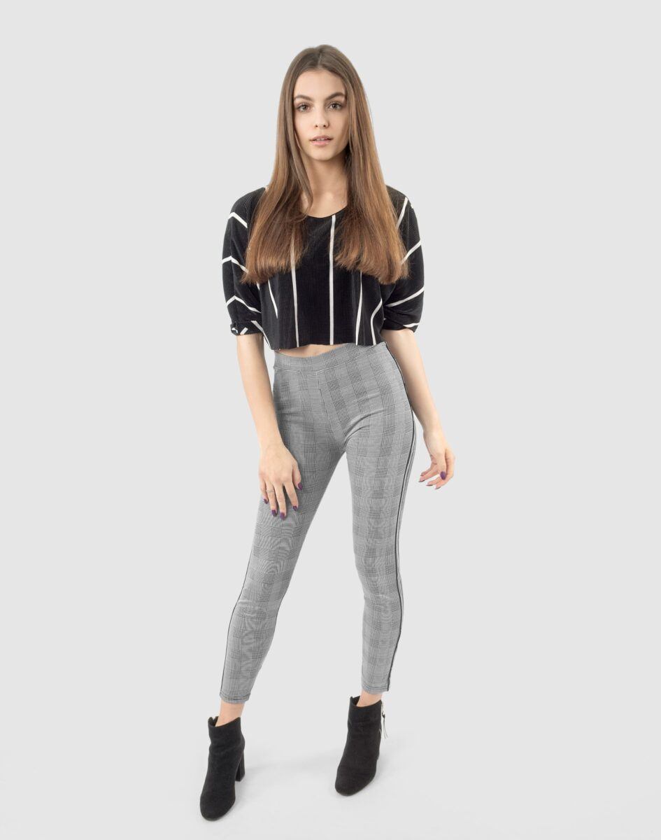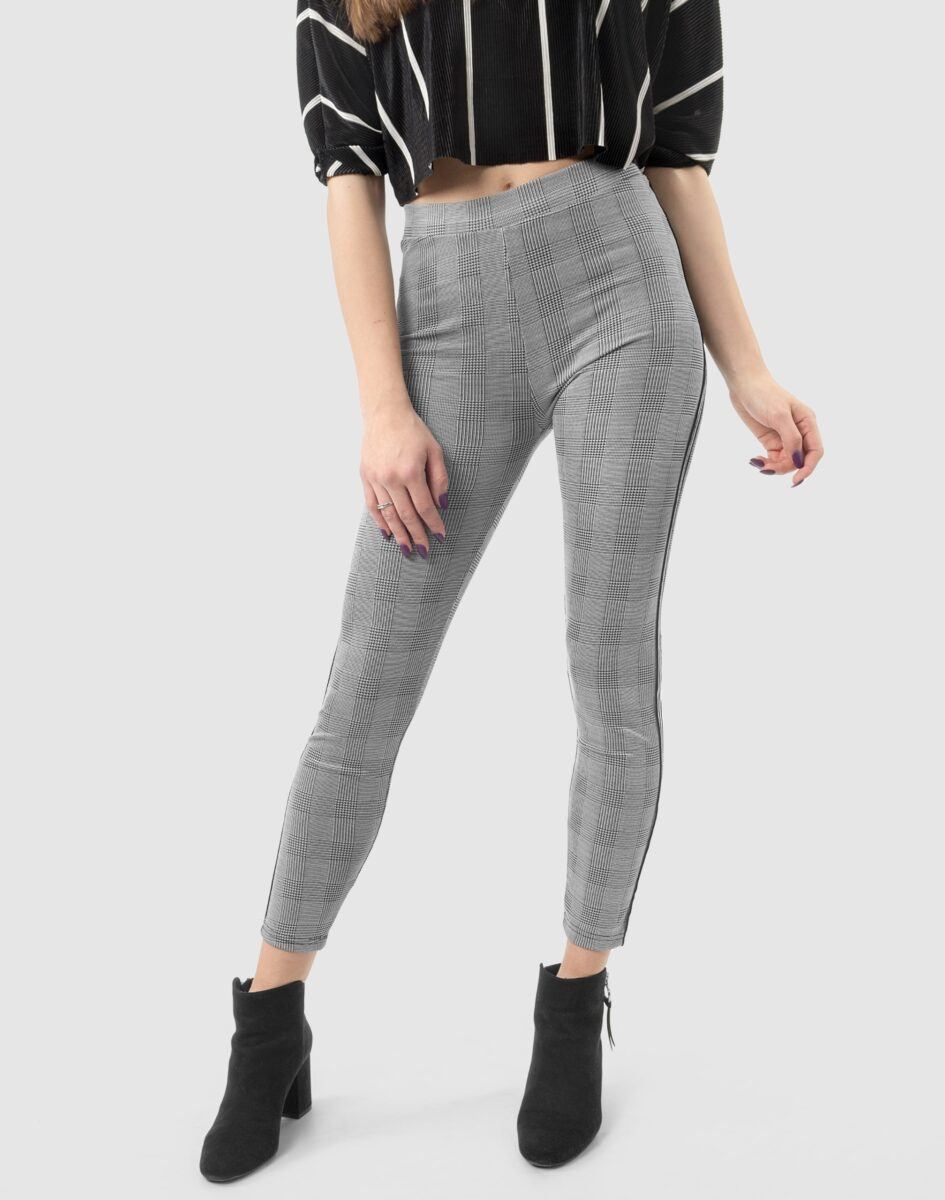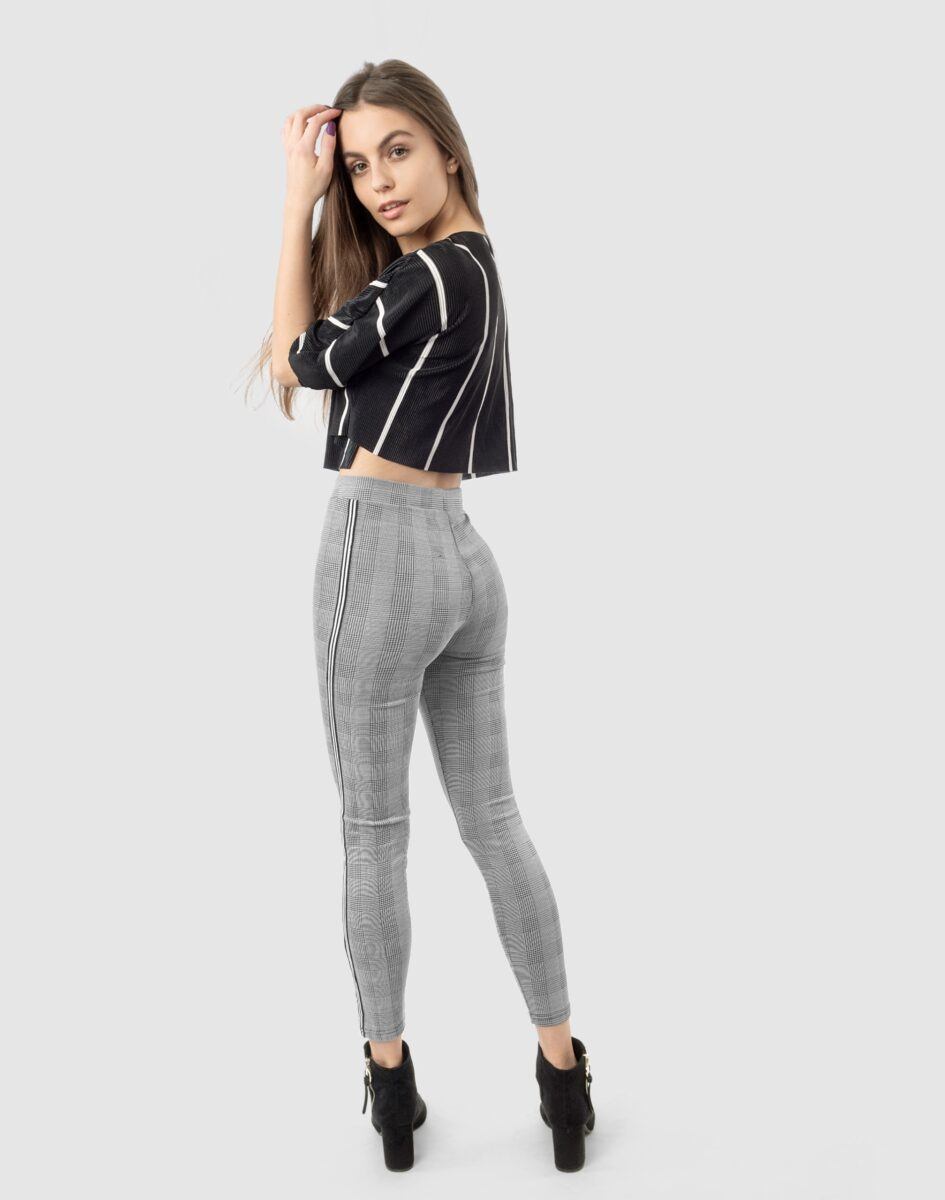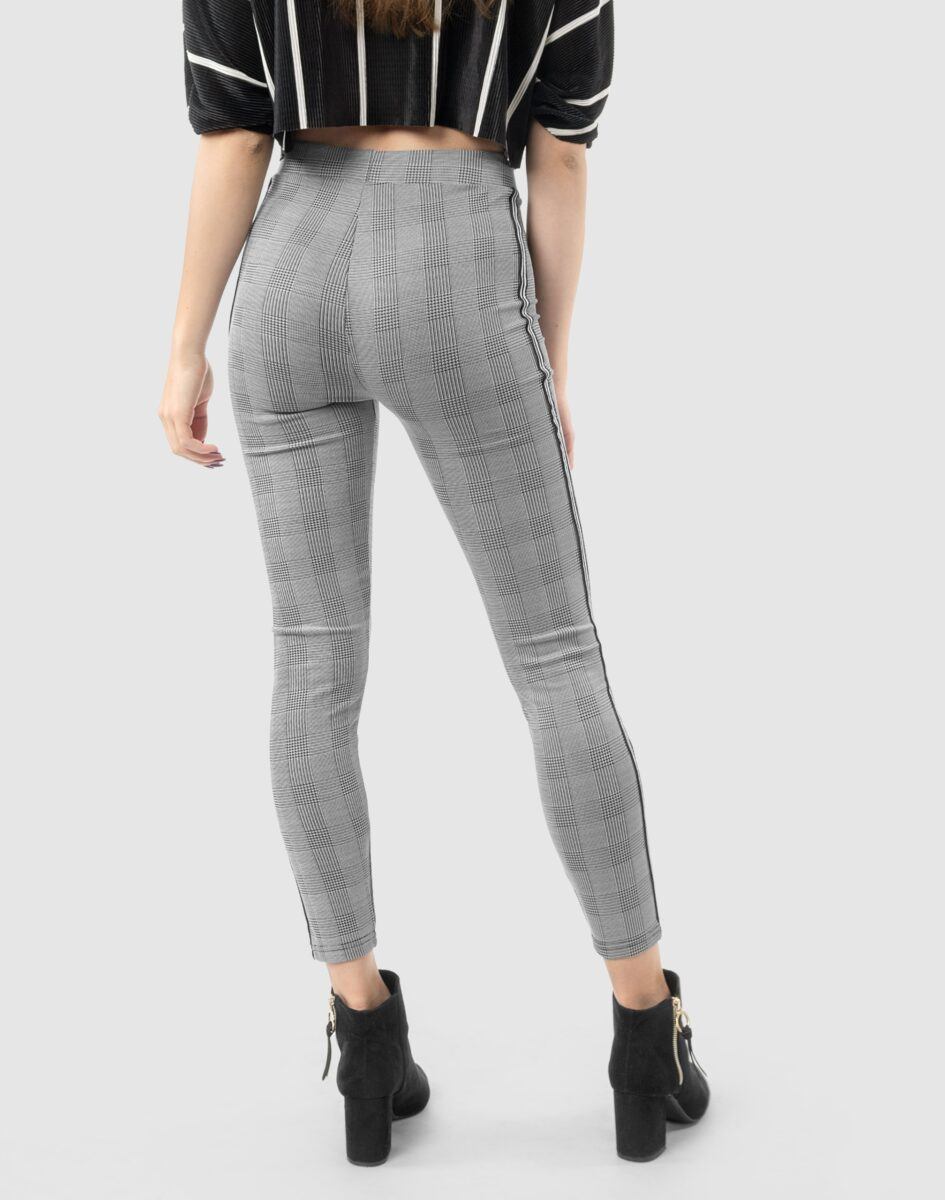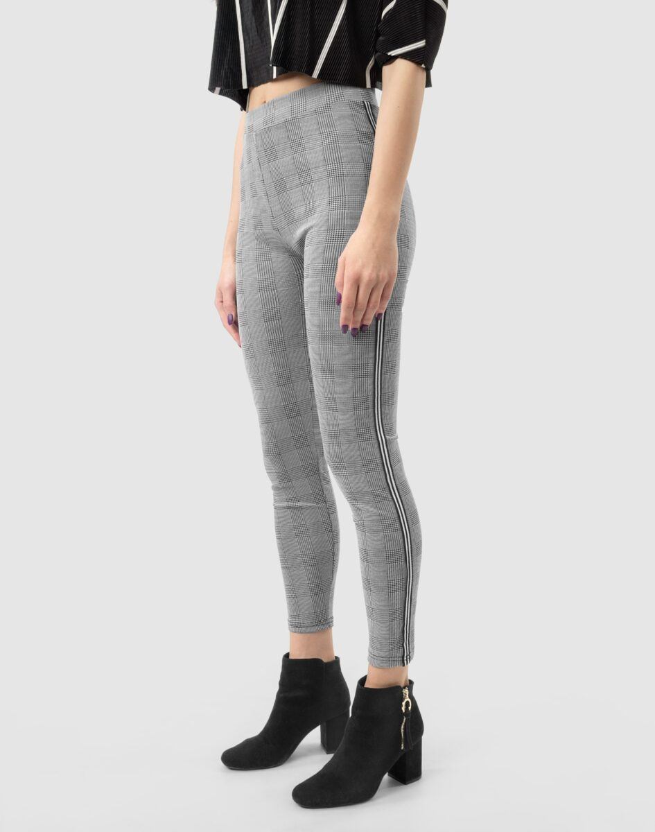 Eleganckie wygodne legginsy damskie w modną kratę z lampasami na nogawkach
