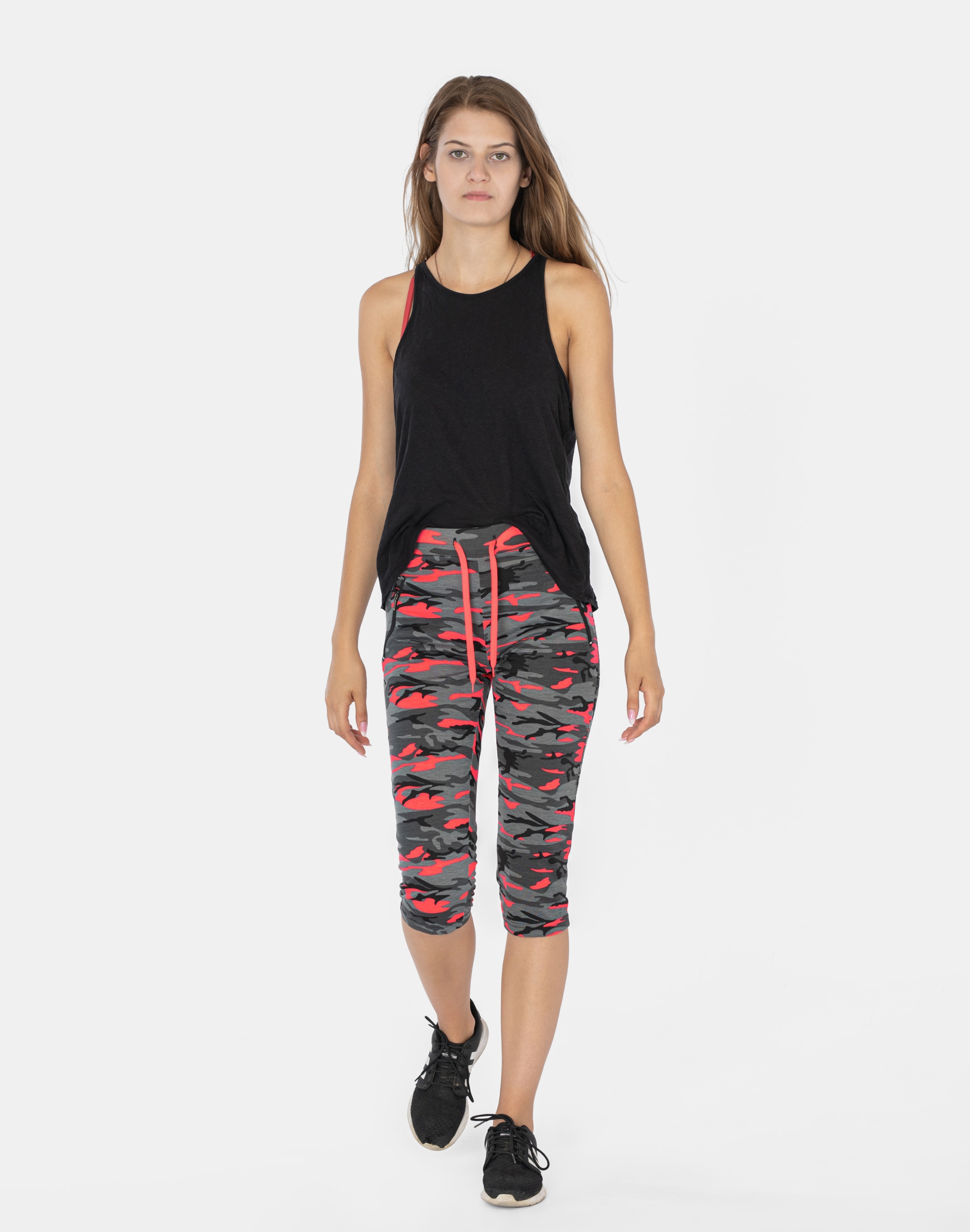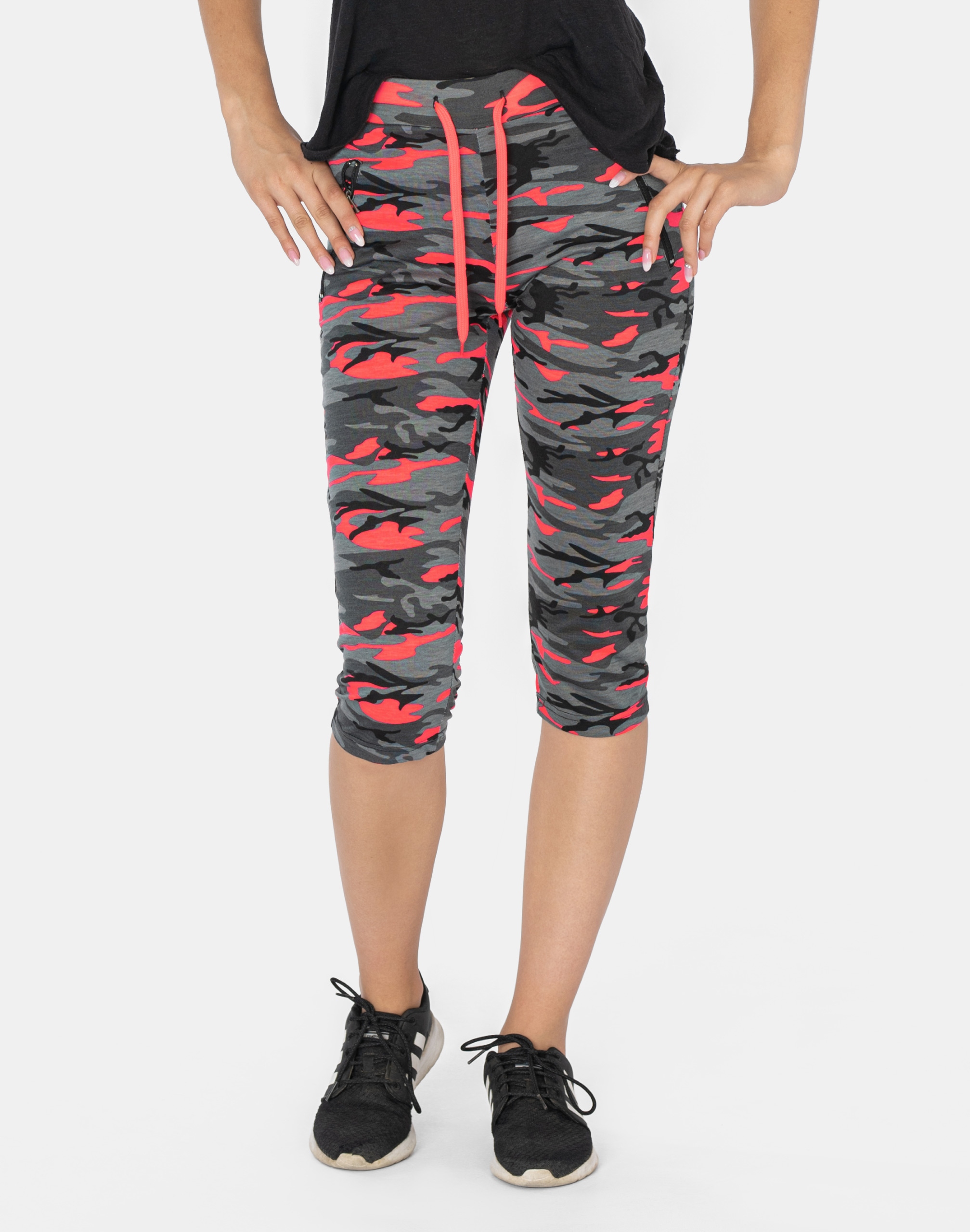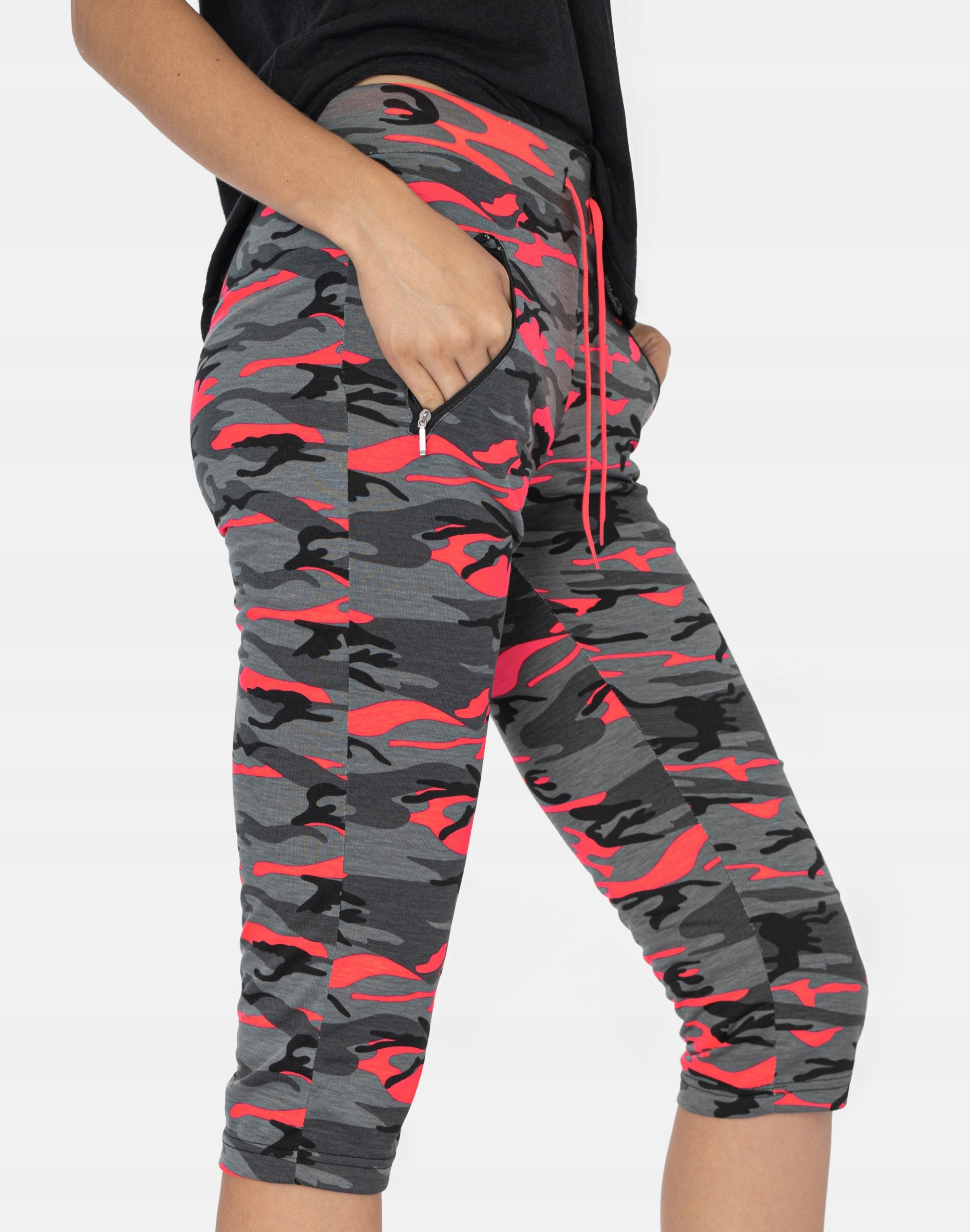 Legginsy sportowe damskie w najmodniejszym w tym sezonie wzorze moro CAMO dla fanek militarnego stylu sport-casual, to komfortowo skrojony model z wysoką elastyczną talią i wąską, dopasowaną nogawką 3/4. Z założenia wyróżniają się dużą wygodą a dopasowanie w pasie zapewnia szeroki, elastyczny pas ściągający oraz dodatkowo wpuszczona w pasek taśma regulacyjna z możliwością jej zawiązywania. Materiał charakteryzuje się dużą elastycznością oraz rozciągliwością, zapewniając doskonałe dopasowanie spodni do sylwetki. Z przodu posiadają dwie wpuszczane kieszenie na dłonie zasuwane na zamki błyskawiczne. Trwałe i elastyczne wykończenie spodni (użycie do produkcji elastycznych nici) gwarantuje komfort i wygodę ich użytkownikowi w każdych warunkach. Możesz w nich chodzić na co dzień, idealnie nadają się również do uprawiania różnych dyscyplin sportu i rekreacji. Doskonale sprawdzą się zarówno na wycieczkach, spacerach, zajęciach w klubach fitness i na siłowni, podczas joggingu w parku, jak i w domowym zaciszu przy telewizorze.