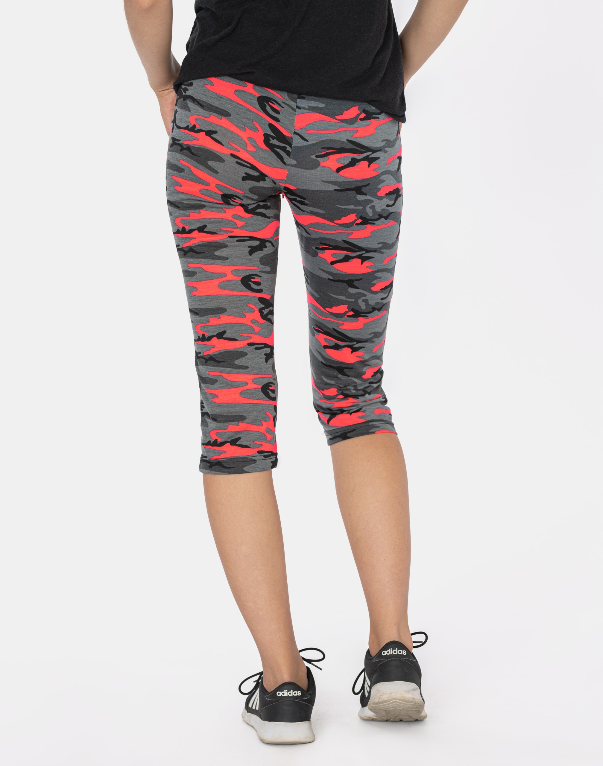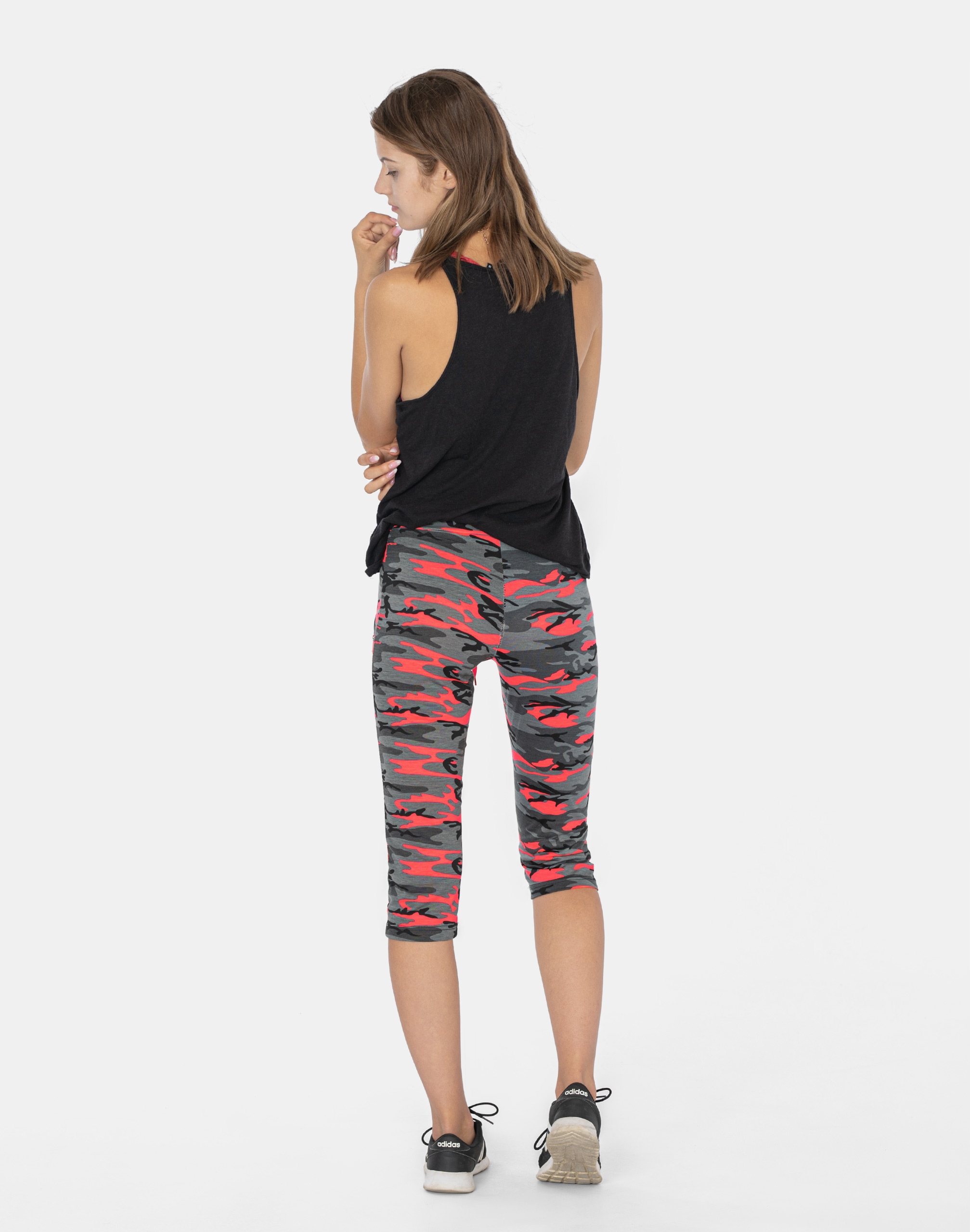 Wygodne legginsy damskie 3/4 wzór militarny moro