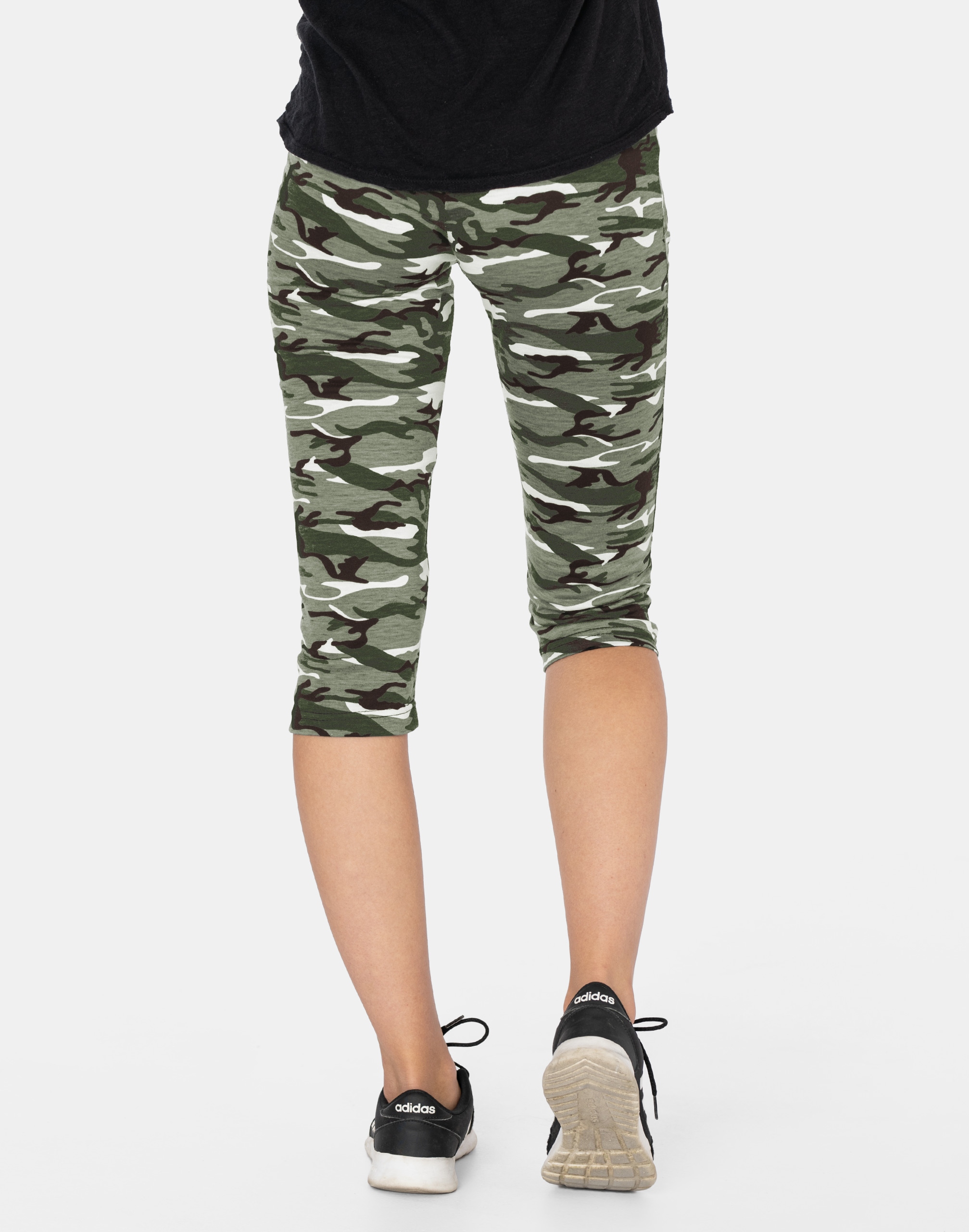 Wygodne legginsy damskie 3/4 wzór militarny moro