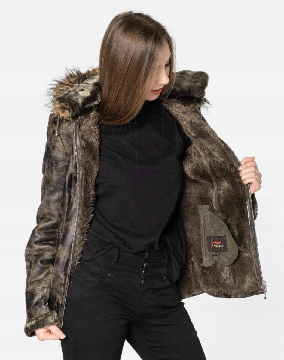 - Kaptur: ocieplony w całości futerkiem, odpinany na zamek błyskawiczny z możliwością regulacji wielkości i dopasowania