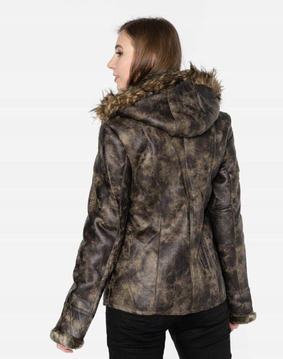 Kurtka jest wyjątkowo ciepła bo ocieplona w całości od wewnętrznej strony sztucznym futerkiem. Materiał zewnętrzny to imitacja zamszowanej skóry zwierzęcej. Długość do bioder, która świetnie podkreśli elegancję i kobiecość w twoim wyglądzie, a jednocześnie trzyma ciepło i przytulność przy mroźnej zimowej pogodzie. Nie krępuje ruchów i z powodzeniem zakrywa części ciała wrażliwe na chłód jak plecy na wysokości nerek. Fason zgrabnie taliowany doskonale wyprofilowana konstrukcja efektownie podkreślająca kobiecą sylwetkę. To prawdziwy evergreen dla udanych zimowych stylizacji.