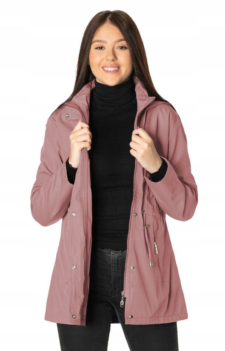 Kurtka jest wiatroszczelna, wodoodporna i zapinana w całości na zamek błyskawiczny kryty plisą zapinaną na napy. Odpinany na zamek i regulowany taśmą ściągającą kaptur osłoni Twoją głowę przed deszczem, chłodem i wiatrem. Wysoki kołnierz typu stójka skutecznie chroni podbródek i szyję a często zastępuje nawet szalik co jest bardzo wygodne. Kurtka posiada dwie kieszenie przednie na dłonie zasuwane na zamki błyskawiczne oraz wewnętrzną kieszeń na portfel, dokumenty, telefon komórkowy MP3 itp. Ściągacz regulacyjny wszyty w talii pozwala na precyzyjne dopasowanie kurtki do ciała, co znacznie zapobiega utracie ciepła i zgrabnie modeluje sylwetkę w talii nadając jej właściwe proporcje. Materiał zewnętrzny jest wiatroszczelny i wodoodporny zapewniając wygodę oraz komfort termiczny użytkowania nawet w mniej sprzyjających warunkach pogodowych. Wewnętrzna strona kurtki wykończona jest materiałową podszewką. Długość do połowy uda, która świetnie podkreśli elegancję i kobiecość w twoim wyglądzie, jak również trzyma ciepło i przytulność przy zmiennej pogodzie. Nie krępuje ruchów i z powodzeniem zakrywa części ciała wrażliwe na chłód jak plecy na wysokości nerek i pośladki.