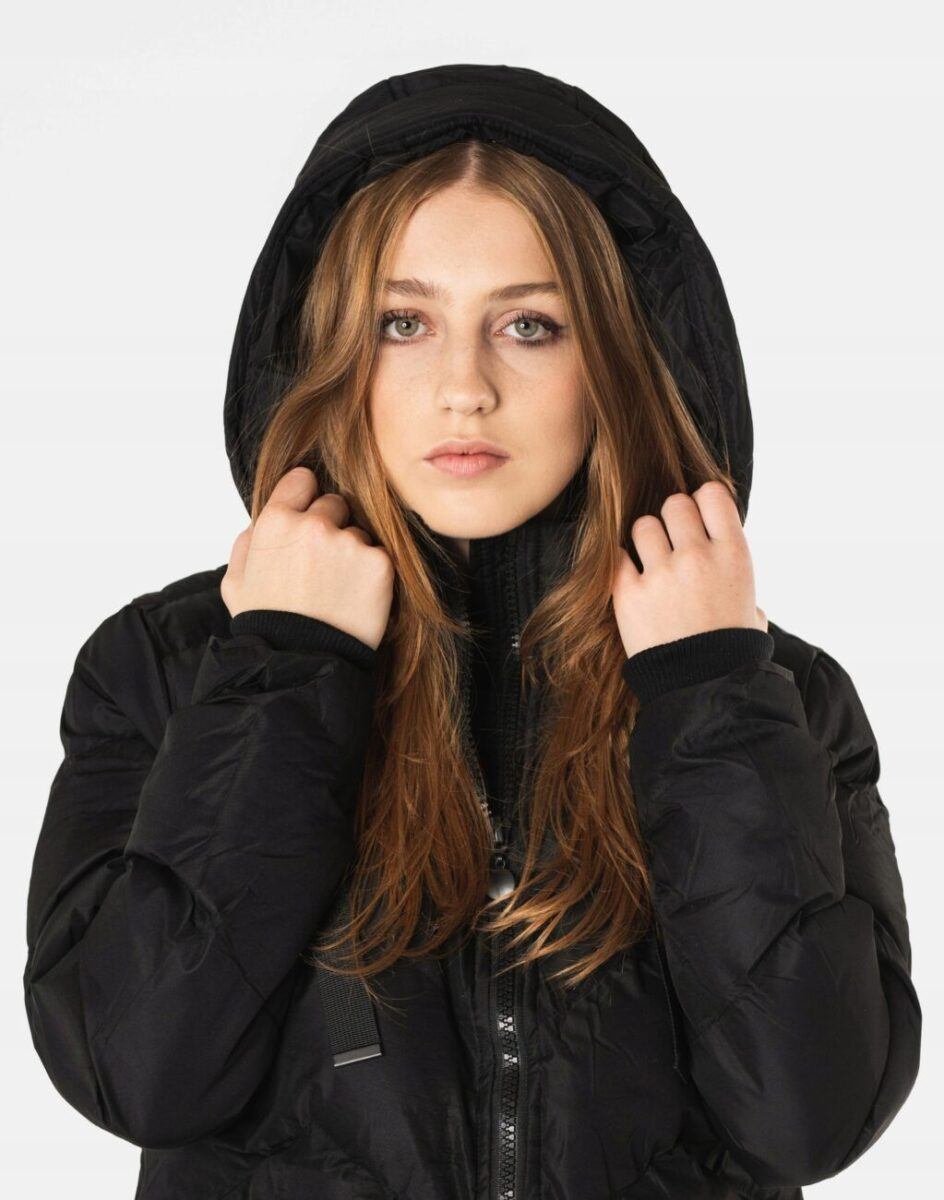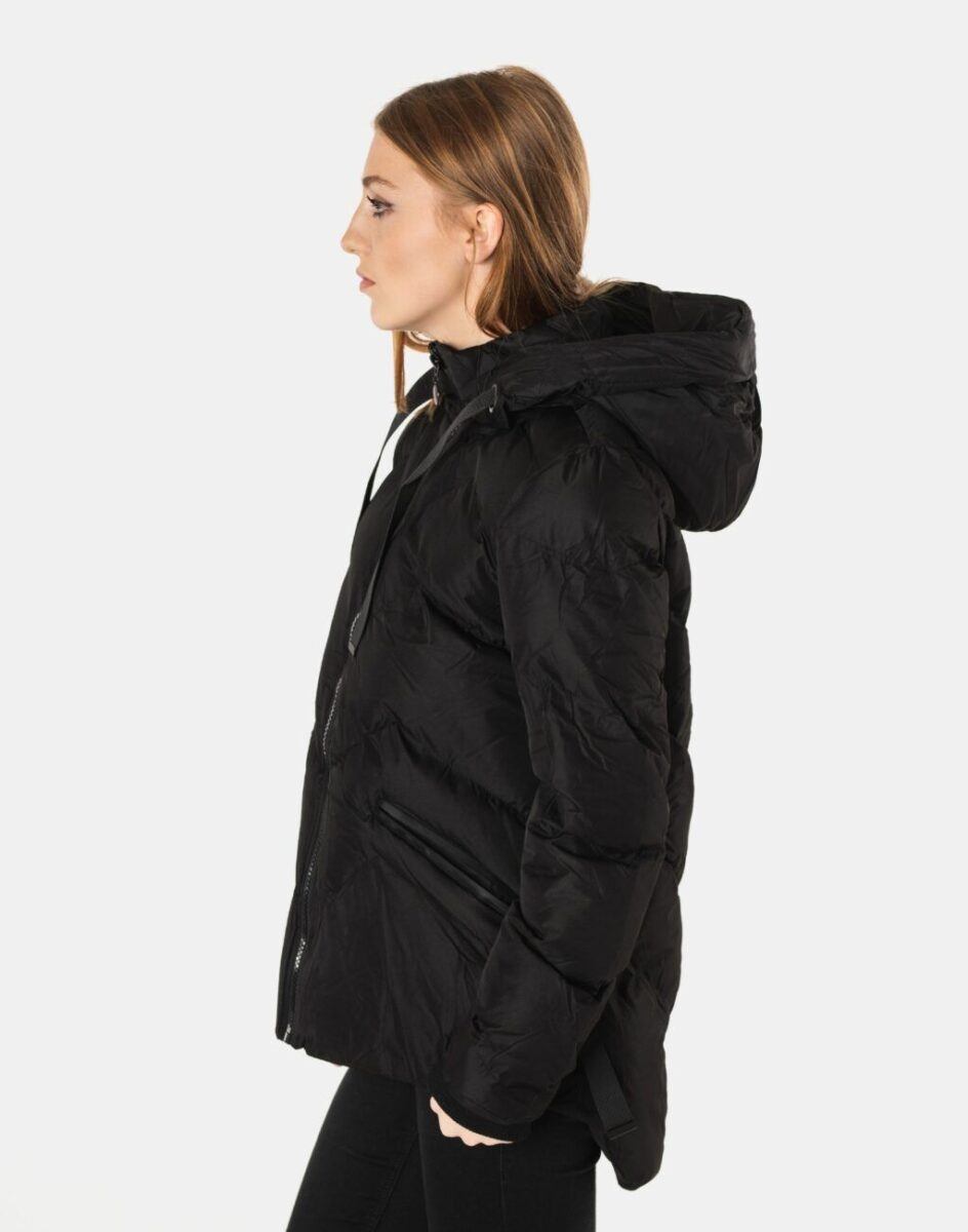 - Fason: puchowa, jednorzędowa, pikowana z kapturem