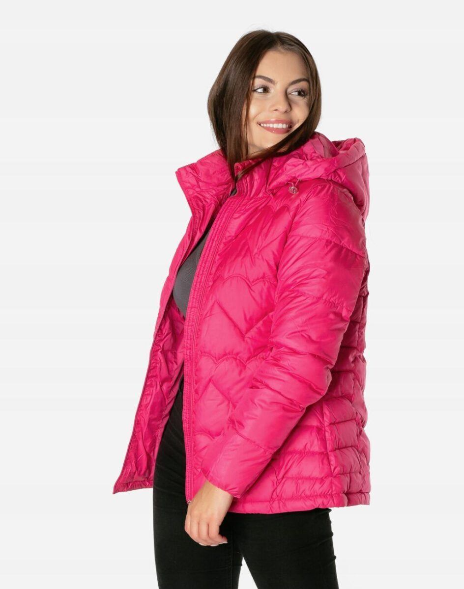 Wyjątkowo ciepła bo ocieplona w całości puchem syntetycznym kurtka damska firmy LANTER SPORTS WEAR to doskonałe i ponadczasowe okrycie wierzchnie na sezon przejściowy i zimowy. Kurtka jest modnie pikowana (aby w powstałych „kieszonkach” zmieścić jak najwięcej grzejącego surowca) i zasuwana w całości na firmowy zamek błyskawiczny wraz z wysokim kołnierzem-stójką. Na bokach kurtki znajdują się dwie wpuszczane kieszenie na dłonie zapinane na napy. Odpinany na zamek, regulowany w 3D za pomocą taśmy ściągającej i stoperów ocieplony puchem syntetycznym kaptur- osłoni Twoją głowę przed deszczem, wiatrem i chłodem, a wysoki kołnierz/stójka skutecznie chroni podbródek i szyję, a często zastępuje nawet szalik co jest bardzo wygodne. Materiał zewnętrzny jest wiatroszczelny i posiada wykończenie typu Water Repellency, które zapobiega nasączeniu warstwy zewnętrznej wodą. Wewnętrzna strona kurtki wykończona jest materiałową podszewką. Elastyczne ściągacze w rękawach skutecznie zapobiegają utracie ciepła i chronią przed podmuchami zimnego wiatru. Dół kurtki jest regulowany wewnętrzną taśmą ściągającą ze stoperami co zapewnia indywidualne dopasowanie. Długość do bioder, która trzyma ciepło i przytulność przy zmiennej pogodzie. Nie krępuje ruchów i z powodzeniem zakrywa części ciała wrażliwe na chłód jak plecy na wysokości nerek i pośladki.