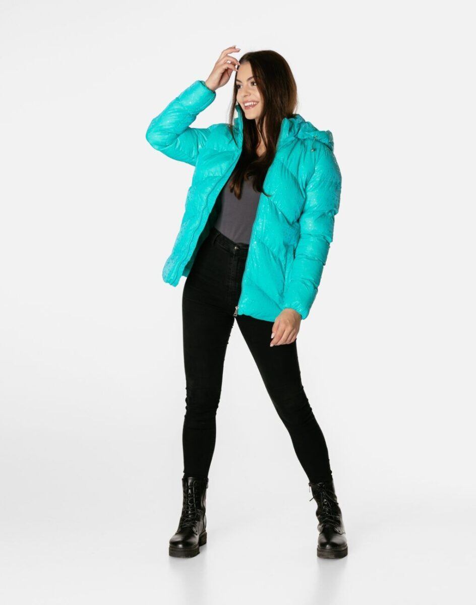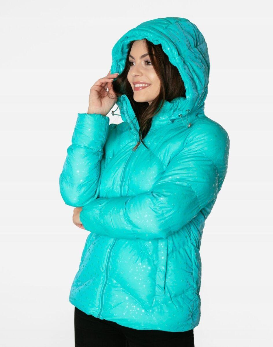 Wyjątkowo ciepła bo ocieplona w całości puchem syntetycznym kurtka damska firmy LANTER SPORTS WEAR to doskonałe i ponadczasowe okrycie wierzchnie na sezon przejściowy i zimowy. Kurtka jest modnie pikowana (aby w powstałych „kieszonkach” zmieścić jak najwięcej grzejącego surowca) i zasuwana w całości na firmowy zamek błyskawiczny wraz z wysokim kołnierzem-stójką. Na bokach kurtki znajdują się dwie wpuszczane kieszenie na dłonie zapinane na napy. Odpinany na zamek, regulowany w 3D za pomocą taśmy ściągającej i stoperów ocieplony puchem syntetycznym kaptur- osłoni Twoją głowę przed deszczem, wiatrem i chłodem, a wysoki kołnierz/stójka skutecznie chroni podbródek i szyję, a często zastępuje nawet szalik co jest bardzo wygodne. Materiał zewnętrzny jest wiatroszczelny i posiada wykończenie typu Water Repellency, które zapobiega nasączeniu warstwy zewnętrznej wodą. Wewnętrzna strona kurtki wykończona jest materiałową podszewką. Elastyczne ściągacze w rękawach skutecznie zapobiegają utracie ciepła i chronią przed podmuchami zimnego wiatru. Dół kurtki jest regulowany wewnętrzną taśmą ściągającą ze stoperami co zapewnia indywidualne dopasowanie. Długość do bioder, która trzyma ciepło i przytulność przy zmiennej pogodzie. Nie krępuje ruchów i z powodzeniem zakrywa części ciała wrażliwe na chłód jak plecy na wysokości nerek i pośladki.