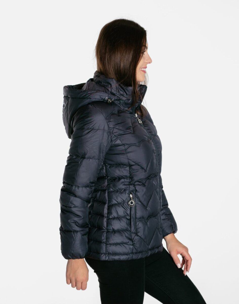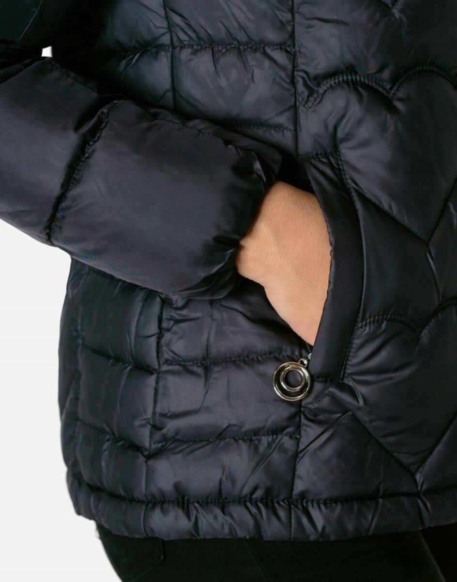 Wyjątkowo ciepła bo ocieplona w całości puchem syntetycznym kurtka damska firmy LANTER SPORTS WEAR to doskonałe i ponadczasowe okrycie wierzchnie na sezon przejściowy i zimowy. Kurtka jest modnie pikowana (aby w powstałych „kieszonkach” zmieścić jak najwięcej grzejącego surowca) i zasuwana w całości na firmowy zamek błyskawiczny wraz z wysokim kołnierzem-stójką. Na bokach kurtki znajdują się dwie wpuszczane kieszenie na dłonie zapinane na napy. Odpinany na zamek, regulowany w 3D za pomocą taśmy ściągającej i stoperów ocieplony puchem syntetycznym kaptur- osłoni Twoją głowę przed deszczem, wiatrem i chłodem, a wysoki kołnierz/stójka skutecznie chroni podbródek i szyję, a często zastępuje nawet szalik co jest bardzo wygodne. Materiał zewnętrzny jest wiatroszczelny i posiada wykończenie typu Water Repellency, które zapobiega nasączeniu warstwy zewnętrznej wodą. Wewnętrzna strona kurtki wykończona jest materiałową podszewką. Elastyczne ściągacze w rękawach skutecznie zapobiegają utracie ciepła i chronią przed podmuchami zimnego wiatru. Dół kurtki jest regulowany wewnętrzną taśmą ściągającą ze stoperami co zapewnia indywidualne dopasowanie. Długość do bioder, która trzyma ciepło i przytulność przy zmiennej pogodzie. Nie krępuje ruchów i z powodzeniem zakrywa części ciała wrażliwe na chłód jak plecy na wysokości nerek i pośladki.