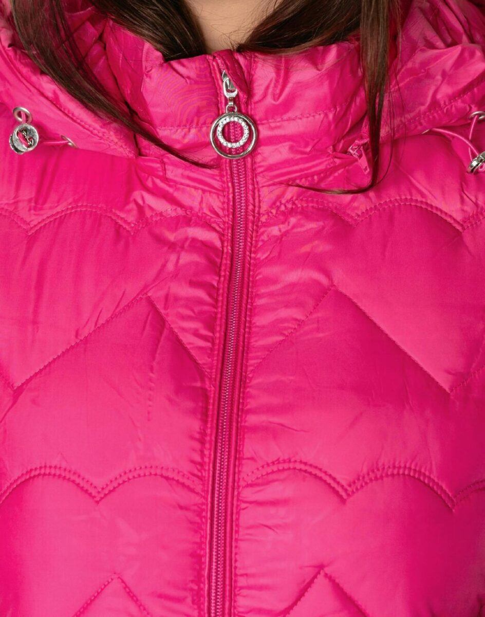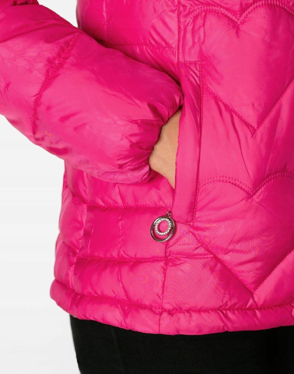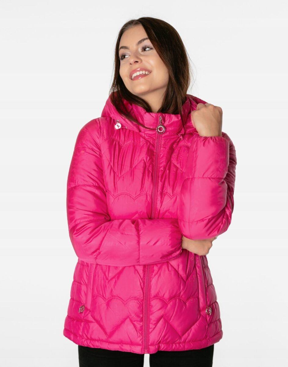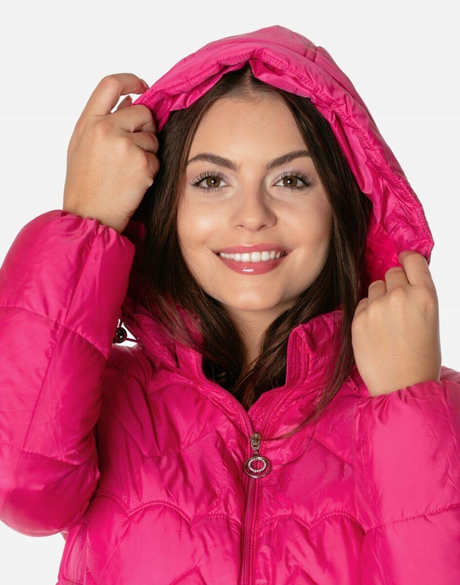 Wyjątkowo ciepła bo ocieplona w całości puchem syntetycznym kurtka damska firmy LANTER SPORTS WEAR to doskonałe i ponadczasowe okrycie wierzchnie na sezon przejściowy i zimowy. Kurtka jest modnie pikowana (aby w powstałych „kieszonkach” zmieścić jak najwięcej grzejącego surowca) i zasuwana w całości na firmowy zamek błyskawiczny wraz z wysokim kołnierzem-stójką. Na bokach kurtki znajdują się dwie wpuszczane kieszenie na dłonie zapinane na napy. Odpinany na zamek, regulowany w 3D za pomocą taśmy ściągającej i stoperów ocieplony puchem syntetycznym kaptur- osłoni Twoją głowę przed deszczem, wiatrem i chłodem, a wysoki kołnierz/stójka skutecznie chroni podbródek i szyję, a często zastępuje nawet szalik co jest bardzo wygodne. Materiał zewnętrzny jest wiatroszczelny i posiada wykończenie typu Water Repellency, które zapobiega nasączeniu warstwy zewnętrznej wodą. Wewnętrzna strona kurtki wykończona jest materiałową podszewką. Elastyczne ściągacze w rękawach skutecznie zapobiegają utracie ciepła i chronią przed podmuchami zimnego wiatru. Dół kurtki jest regulowany wewnętrzną taśmą ściągającą ze stoperami co zapewnia indywidualne dopasowanie. Długość do bioder, która trzyma ciepło i przytulność przy zmiennej pogodzie. Nie krępuje ruchów i z powodzeniem zakrywa części ciała wrażliwe na chłód jak plecy na wysokości nerek i pośladki.