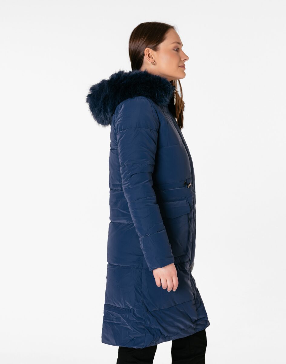 Ciepła zimowa kurtka damska typu Alaska ocieplona w całości puchem syntetycznym, z praktycznym ocieplonym i odpinanym na zamek kapturem ozdobionym puszystym futerkiem. Modnie pikowana (aby w powstałych „kieszonkach” zmieścić jak najwięcej grzejącego surowca) i zasuwana w całości na dwukierunkowy zamek błyskawiczny kryty plisą zapinaną na firmowe napy. Materiał na zewnątrz posiada wykończenie typu Water Repellency, które zapobiega nasączeniu warstwy zewnętrznej wodą. Kurtka posiada dwie duże podwójne kieszenie na dłonie kryte patkami zapinanymi na napy. Wysoki, ocieplony kołnierz/stójka, zasłania szyję i chroni gardło, a często zastępuje nawet szalik co jest bardzo wygodne i skutecznie chroni przed zimnem i wiatrem. Praktyczny ocieplony puchem syntetycznym i odpinany na zamek kaptur, ozdobiony odpinanym sztucznym futerkiem osłoni Twoją głowę przed deszczem, wiatrem i chłodem. Ściągacz regulacyjny wszyty w talii pozwala na precyzyjne dopasowanie kurtki do ciała, co znacznie zapobiega utracie ciepła i zgrabnie modeluje sylwetkę w talii nadając jej właściwe proporcje. Wewnętrzna strona kurtki wykończona jest materiałową podszewką. Długość do kolan, która świetnie podkreśli elegancję i kobiecość w twoim wyglądzie, trzyma ciepło i przytulność przy mroźnej pogodzie, nie krępuje ruchów i z powodzeniwm zakrywa części ciała wrażliwe na chłód jak plecy na wysokości nerek, pośladki i uda. Modny krój pikowanych paneli i doskonale wyprofilowana konstrukcja prezentowana obecnie szeroko na modowych blogach.