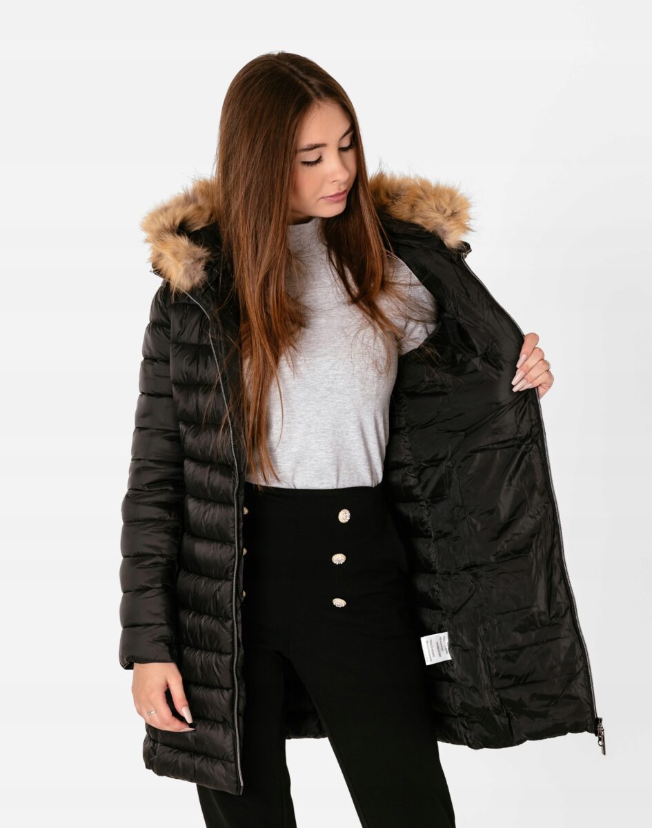 - Kaptur odpinany na zamek, ocieplony puchem syntetycznym i ozdobiony ciepłym futerkiem