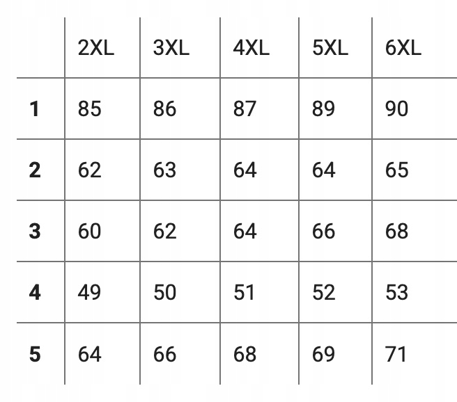 Proszę nie sugerować się rozmiarem podanym na metce przez producenta ( np: 2XL,3XL,4XL czy 6XL) ponieważ różne firmy stosują bardzo różne oznaczenia rozmiaru na co my jako sprzedawcy na Allegro nie mamy żadnego wpływu. Najlepiej jest zmierzyć się dokładnie centymetrem a następnie porównać swoje wymiary z tabelą wymiarów podaną przez nas na aukcji i wybrać odpowiedni rozmiar.