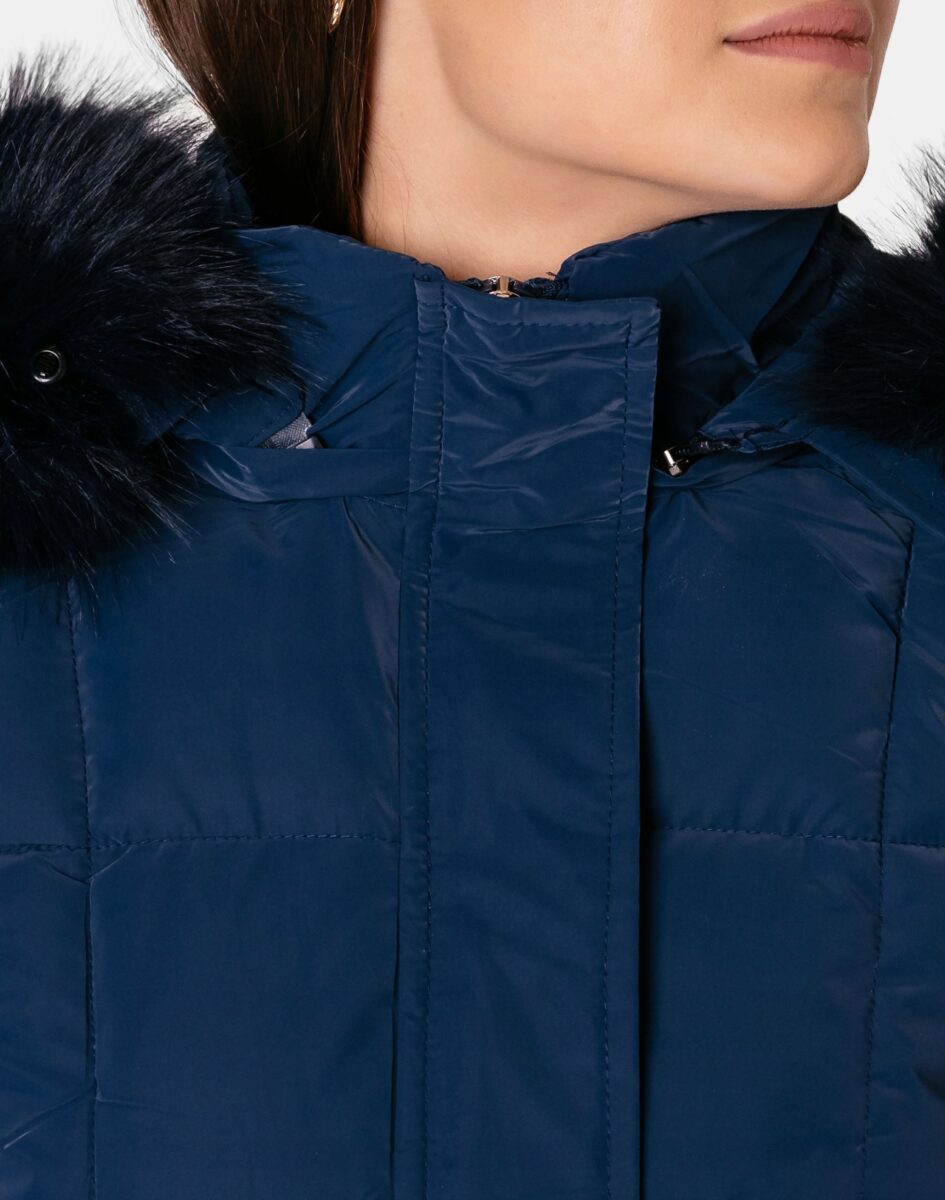 - Kaptur odpinany na zamek, ocieplony w całości puchem syntetycznym, z odpinanym na guziki ozdobnym, puszystym futerkiem