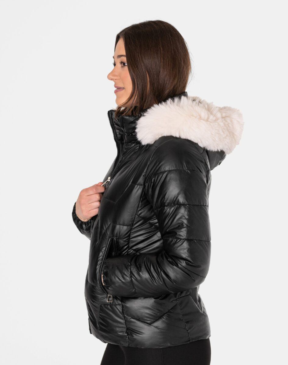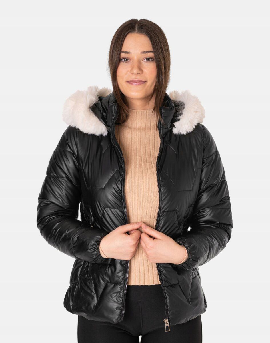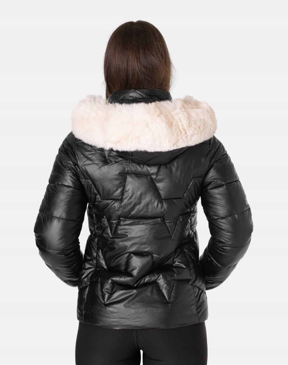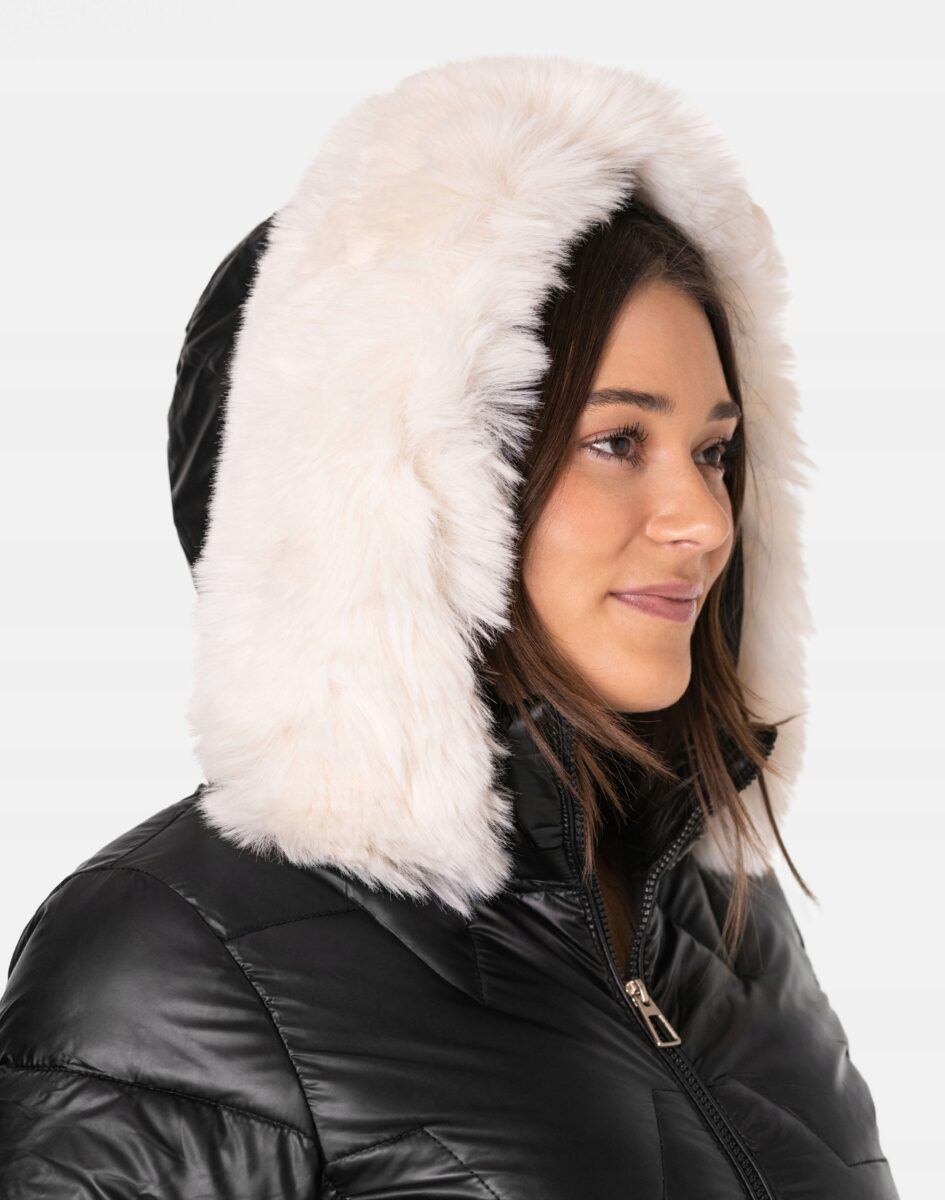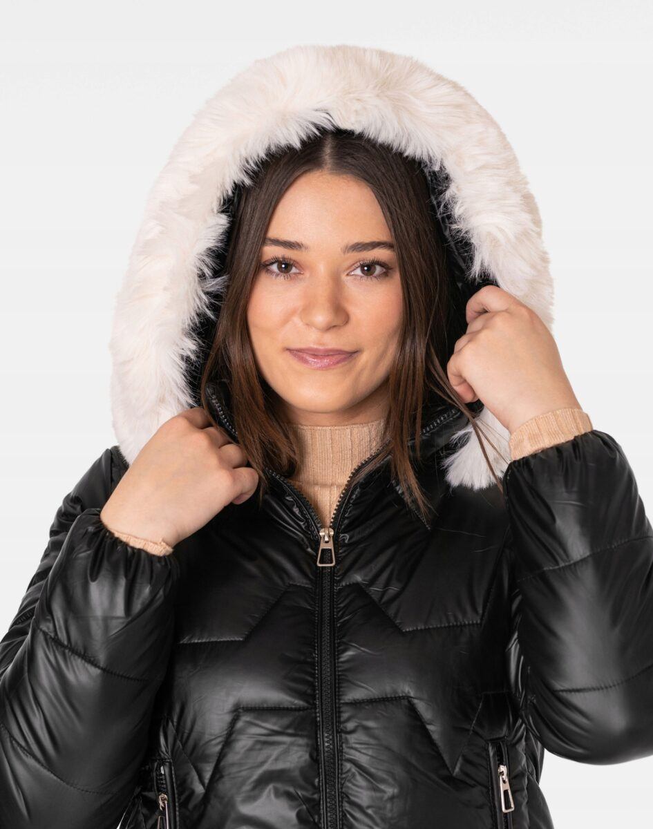 - Kaptur odpinany na zamek, ocieplony puchem syntetycznym, regulowany w 3D ściągaczem, z odpinanym ozdobnym białym futerkiem