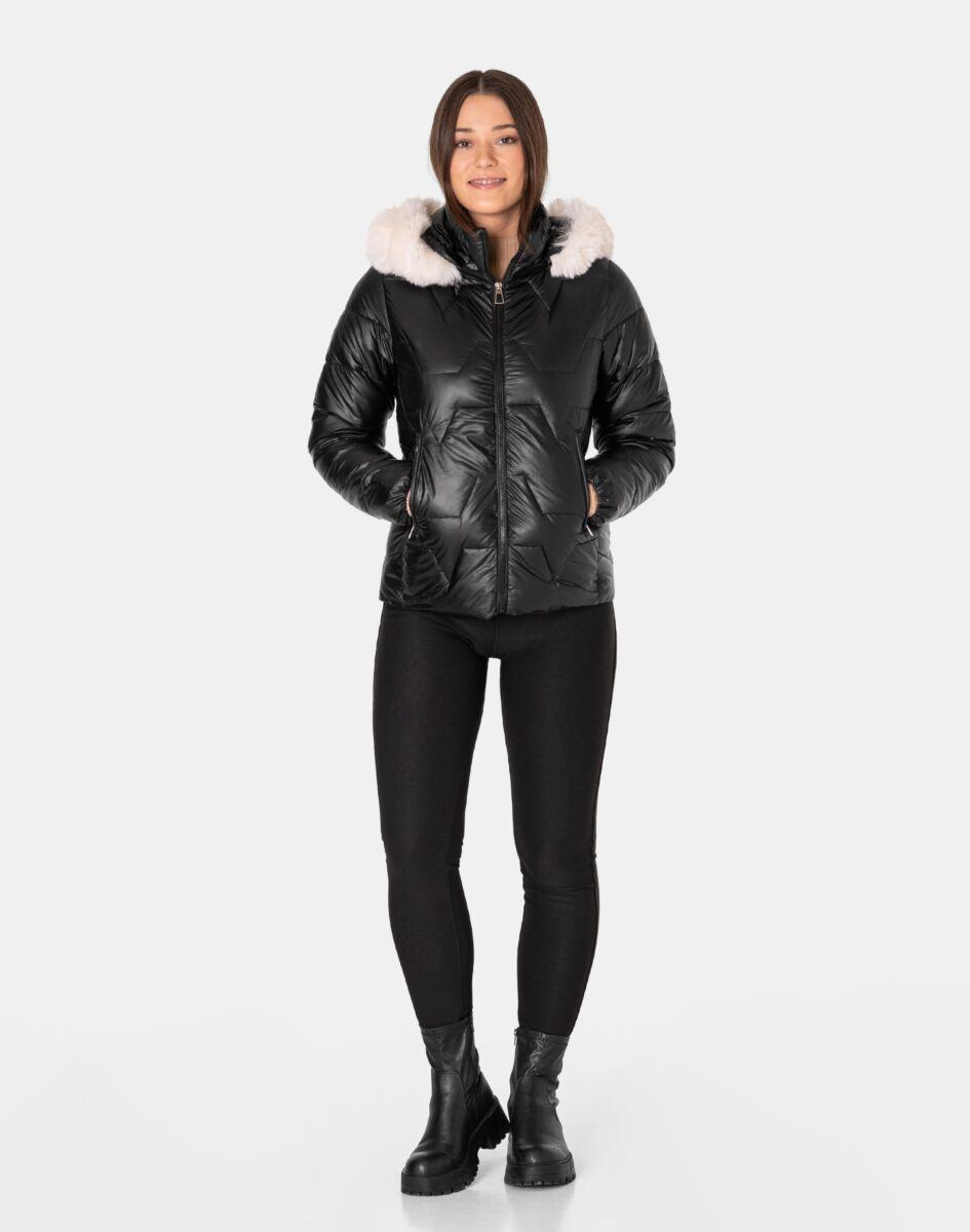 - Fason: puchowa, jednorzędowa, z kapturem