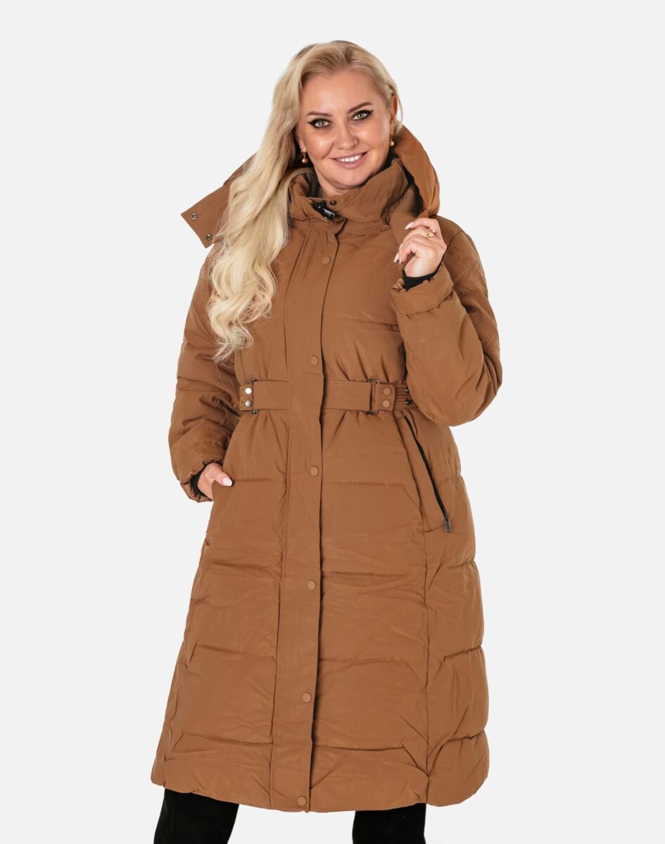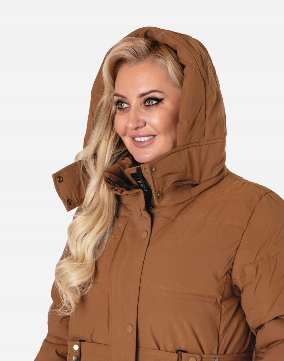 Wyjątkowo ciepły bo ocieplony w całości puchem syntetycznym długi puchowy płaszczyk damskiz praktycznym ocieplonym kapturem, to doskonałe i ponadczasowe okrycie wierzchnie na sezon przejściowy i zimowy. Modnie pikowany (aby w powstałych „kieszonkach” zmieścić jak najwięcej grzejącego surowca) i zasuwany w całości na kryty plisą zapinaną na metalowe napy dwukierunkowy zamek błyskawiczny wraz z wysokim kołnierzem-stójką. Płaszczyk posiada dwie duże wpuszczane kieszenie na dłonie zasuwane na zamki błyskawiczne oraz wysoki, ocieplony kołnierz/stójkę, który skutecznie zasłania szyję i chroni gardło, a często zastępuje nawet szalik co jest bardzo wygodne i skutecznie chroni przed zimnem i wiatrem. Praktyczny odpinany na zamek i ocieplony puchem syntetycznym kaptur, osłoni Twoją głowę przed deszczem, wiatrem i chłodem. Materiał zewnętrzny jest wiatroszczelny i posiada wykończenie typu Water Repellency, które zapobiega nasączeniu warstwy zewnętrznej wodą. Wewnętrzna strona kurtki wykończona jest techniczną materiałową podszewką. Elastyczne wiatrołapy wszyte w rękawach skutecznie zapobiegają utracie ciepła i chronią przed podmuchami zimnego wiatru. Regulowany na metalowe napy szeroki pasek pozwala na indywidualne dopasowanie do ciała i zgrabnie modeluje sylwetkę w talii nadając jej właściwe proporcje. Długość za kolano, która świetnie podkreśli elegancję i kobiecość w twoim wyglądzie, trzyma ciepło i przytulność przy mroźnej pogodzie, nie krępuje ruchów i z powodzeniem zakrywa części ciała wrażliwe na chłód jak plecy na wysokości nerek, pośladki i uda. Modny krój pikowanych paneli i doskonale wyprofilowana konstrukcja prezentowana obecnie szeroko na modowych blogach.