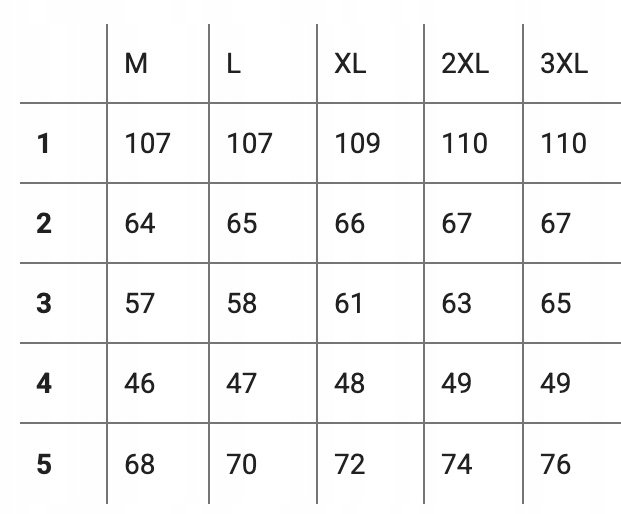 Proszę nie sugerować się rozmiarem podanym na metce przez producenta (np: XL, XXL czy 4XL itp.) ponieważ różne firmy stosują bardzo różne oznaczenia rozmiaru na co my jako sprzedawcy na Allegro nie mamy żadnego wpływu. Najlepiej jest zmierzyć się dokładnie centymetrem a następnie porównać swoje wymiary z tabelą wymiarów podaną przez nas na aukcji i wybrać odpowiedni rozmiar.