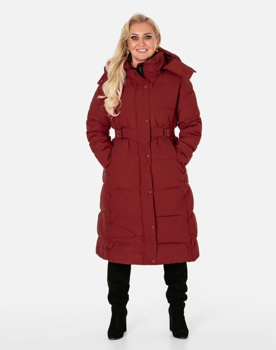 Wyjątkowo ciepły bo ocieplony w całości puchem syntetycznym długi puchowy płaszczyk damskiz praktycznym ocieplonym kapturem, to doskonałe i ponadczasowe okrycie wierzchnie na sezon przejściowy i zimowy. Modnie pikowany (aby w powstałych „kieszonkach” zmieścić jak najwięcej grzejącego surowca) i zasuwany w całości na kryty plisą zapinaną na metalowe napy dwukierunkowy zamek błyskawiczny wraz z wysokim kołnierzem-stójką. Płaszczyk posiada dwie duże wpuszczane kieszenie na dłonie zasuwane na zamki błyskawiczne oraz wysoki, ocieplony kołnierz/stójkę, który skutecznie zasłania szyję i chroni gardło, a często zastępuje nawet szalik co jest bardzo wygodne i skutecznie chroni przed zimnem i wiatrem. Praktyczny odpinany na zamek i ocieplony puchem syntetycznym kaptur, osłoni Twoją głowę przed deszczem, wiatrem i chłodem. Materiał zewnętrzny jest wiatroszczelny i posiada wykończenie typu Water Repellency, które zapobiega nasączeniu warstwy zewnętrznej wodą. Wewnętrzna strona kurtki wykończona jest techniczną materiałową podszewką. Elastyczne wiatrołapy wszyte w rękawach skutecznie zapobiegają utracie ciepła i chronią przed podmuchami zimnego wiatru. Regulowany na metalowe napy szeroki pasek pozwala na indywidualne dopasowanie do ciała i zgrabnie modeluje sylwetkę w talii nadając jej właściwe proporcje. Długość za kolano, która świetnie podkreśli elegancję i kobiecość w twoim wyglądzie, trzyma ciepło i przytulność przy mroźnej pogodzie, nie krępuje ruchów i z powodzeniem zakrywa części ciała wrażliwe na chłód jak plecy na wysokości nerek, pośladki i uda. Modny krój pikowanych paneli i doskonale wyprofilowana konstrukcja prezentowana obecnie szeroko na modowych blogach.