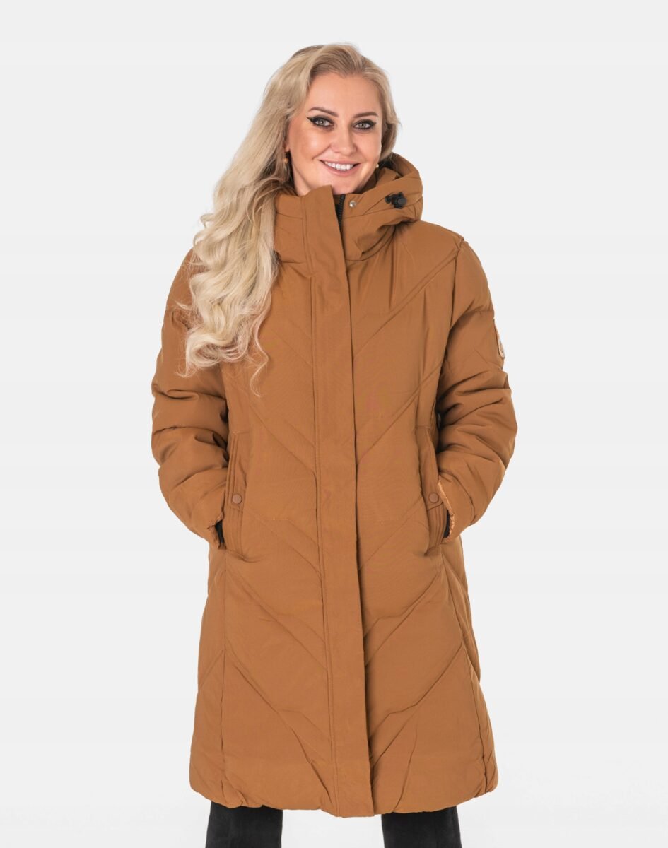 Ciepły Ocieplony Długi Płaszcz Puchowy Damski Zimowy Ocieplany 23939-1 XXL