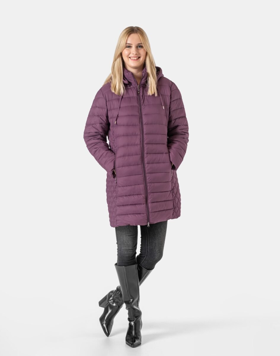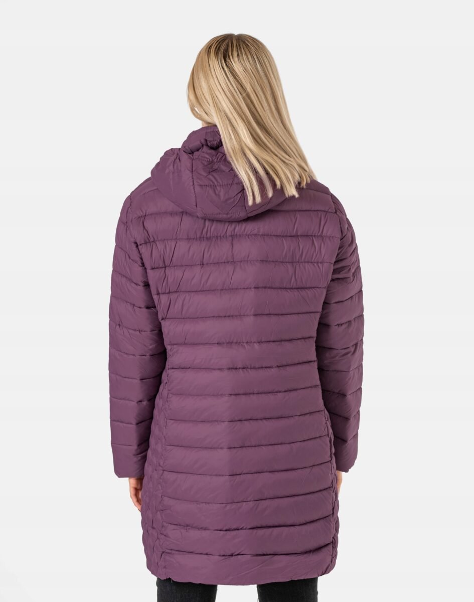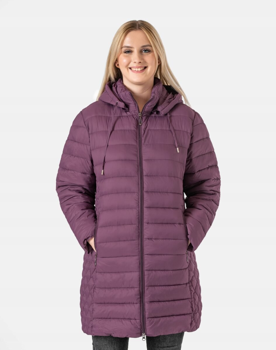Wyjątkowo ciepły bo ocieplony w całości puchem syntetycznym długi puchowy płaszczyk damskiz praktycznym ocieplonym kapturem, to doskonałe i ponadczasowe okrycie wierzchnie na sezon przejściowy i zimowy. Modnie pikowany (aby w powstałych „kieszonkach” zmieścić jak najwięcej grzejącego surowca) i zasuwany w całości na dwukierunkowy zamek błyskawiczny wraz z wysokim kołnierzem-stójką. Płaszczyk posiada dwie duże wpuszczane kieszenie na dłonie zasuwane na zamki błyskawiczne oraz wysoki, ocieplony kołnierz/stójkę, który skutecznie zasłania szyję i chroni gardło, a często zastępuje nawet szalik co jest bardzo wygodne i skutecznie chroni przed zimnem i wiatrem. Praktyczny, odpinany na zamek, regulowany w 3D taśmą i ocieplony puchem syntetycznym kaptur, osłoni Twoją głowę przed deszczem, wiatrem i chłodem. Materiał zewnętrzny jest wiatroszczelny i posiada wykończenie typu Water Repellency, które zapobiega nasączeniu warstwy zewnętrznej wodą. Wewnętrzna strona płaszcza wykończona jest techniczną materiałową podszewką. Elastyczne wiatrołapy wszyte w rękawach skutecznie zapobiegają utracie ciepła i chronią przed podmuchami zimnego wiatru. Długość do połowy uda, która świetnie podkreśli elegancję i kobiecość w twoim wyglądzie, trzyma ciepło i przytulność przy mroźnej pogodzie, nie krępuje ruchów i z powodzeniem zakrywa części ciała wrażliwe na chłód jak plecy na wysokości nerek, pośladki i uda. Modny krój pikowanych paneli i doskonale wyprofilowana konstrukcja prezentowana obecnie szeroko na modowych blogach.