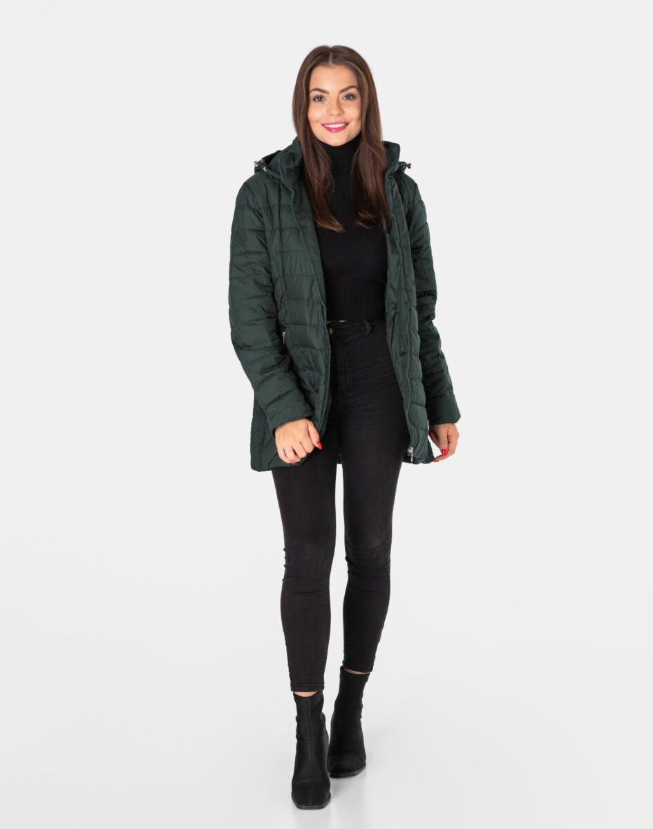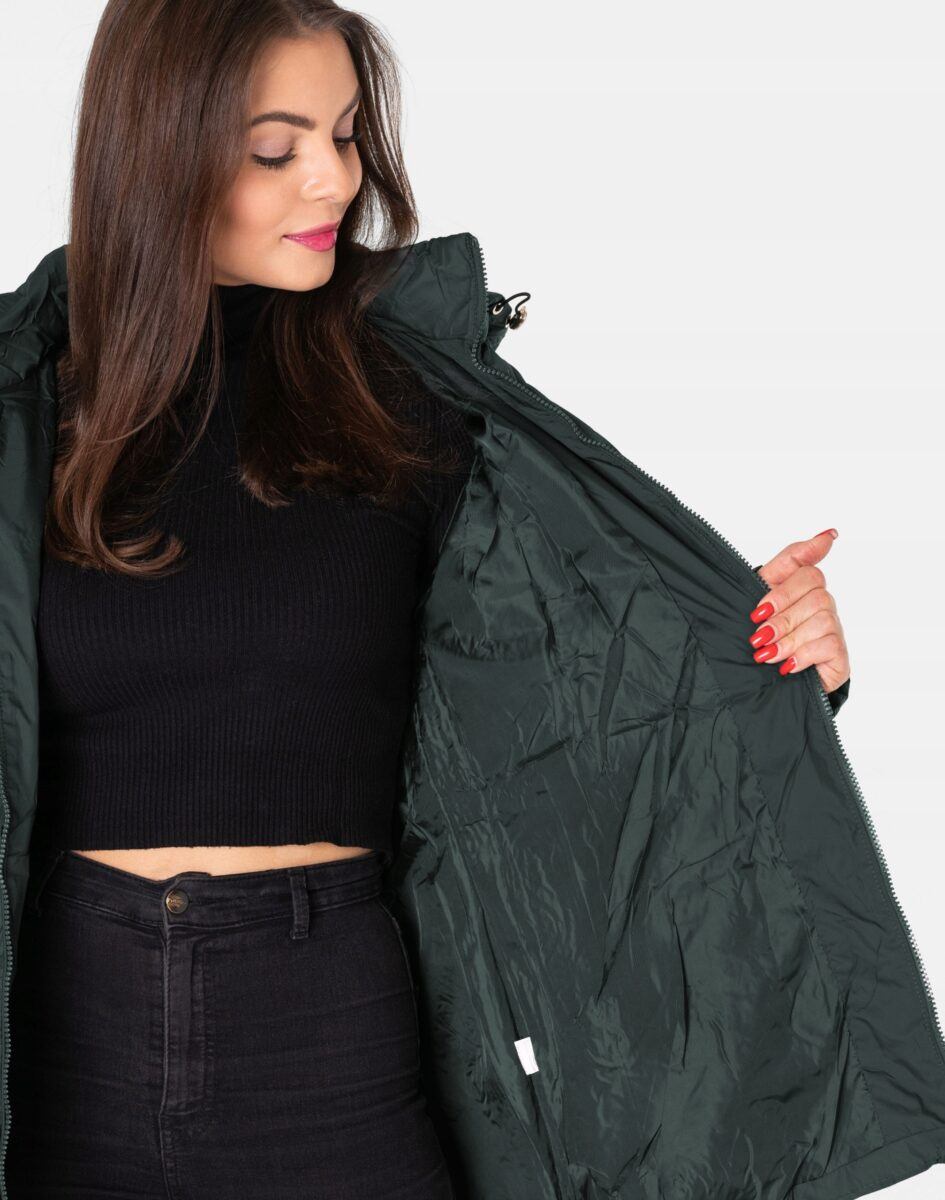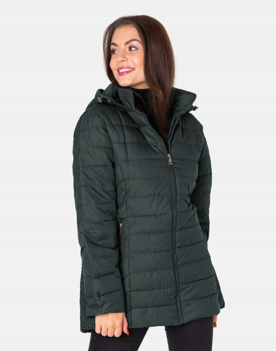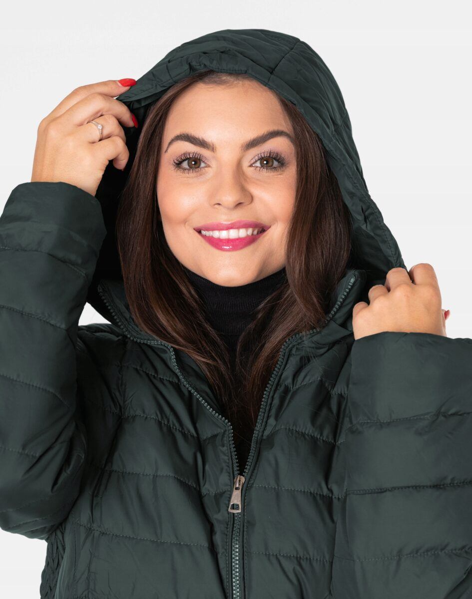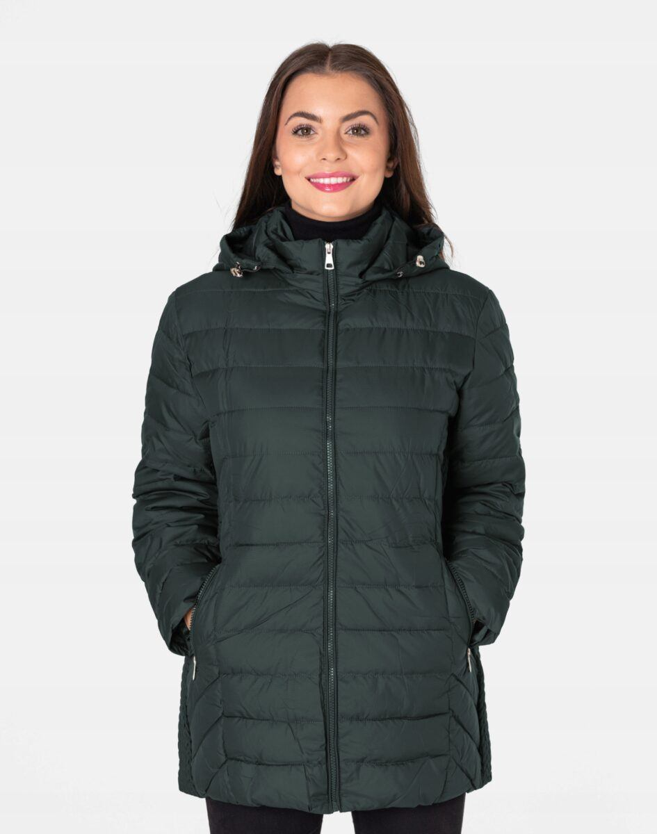 Wyjątkowo ciepła bo ocieplona w całości puchem syntetycznym kurtka damska model # JLQM603to doskonałe i ponadczasowe okrycie wierzchnie na sezon przejściowy i zimowy. Kurtka jest modnie pikowana (aby w powstałych „kieszonkach” zmieścić jak najwięcej grzejącego surowca) i zasuwana w całości na firmowy zamek błyskawiczny wraz z wysokim kołnierzem-stójką. Na bokach kurtki znajdują się dwie wpuszczane kieszenie na dłonie zasuwane na zamki błyskawiczne. Zintegrowany, regulowany w 3D za pomocą stoperów ocieplony puchem syntetycznym kaptur- osłoni Twoją głowę przed deszczem, wiatrem i chłodem, a wysoki kołnierz/stójka skutecznie chroni podbródek i szyję, a często zastępuje nawet szalik co jest bardzo wygodne. Materiał zewnętrzny jest wiatroszczelny i posiada wykończenie typu Water Repellency, które zapobiega nasączeniu warstwy zewnętrznej wodą. Wewnętrzna strona kurtki wykończona jest materiałową podszewką. Długie rękawy skutecznie zapobiegają utracie ciepła i chronią przed podmuchami zimnego wiatru. Długość do połowy uda, która trzyma ciepło i przytulność przy zmiennej pogodzie. Nie krępuje ruchów i z powodzeniem zakrywa części ciała wrażliwe na chłód jak plecy na wysokości nerek i pośladki.