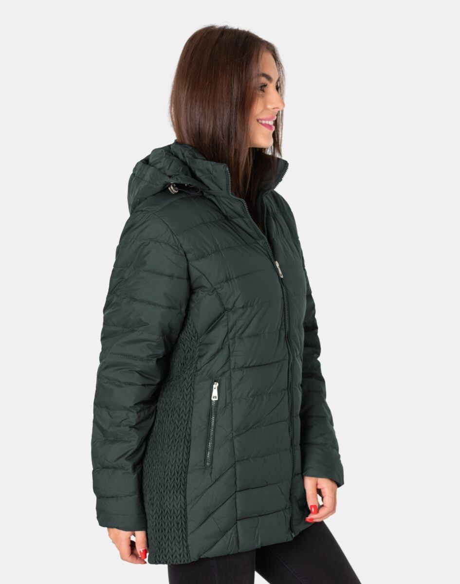 - Kaptur odpinany na zamek, ocieplony puchem syntetycznym, regulowany w 3D ściągaczem