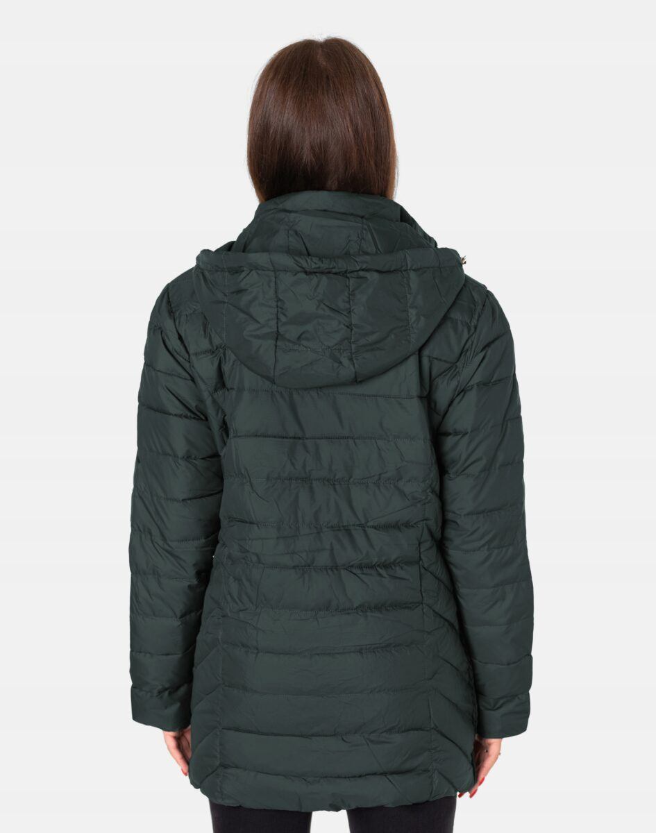 Wyjątkowo ciepła bo ocieplona w całości puchem syntetycznym kurtka damska model # JLQM603to doskonałe i ponadczasowe okrycie wierzchnie na sezon przejściowy i zimowy. Kurtka jest modnie pikowana (aby w powstałych „kieszonkach” zmieścić jak najwięcej grzejącego surowca) i zasuwana w całości na firmowy zamek błyskawiczny wraz z wysokim kołnierzem-stójką. Na bokach kurtki znajdują się dwie wpuszczane kieszenie na dłonie zasuwane na zamki błyskawiczne. Zintegrowany, regulowany w 3D za pomocą stoperów ocieplony puchem syntetycznym kaptur- osłoni Twoją głowę przed deszczem, wiatrem i chłodem, a wysoki kołnierz/stójka skutecznie chroni podbródek i szyję, a często zastępuje nawet szalik co jest bardzo wygodne. Materiał zewnętrzny jest wiatroszczelny i posiada wykończenie typu Water Repellency, które zapobiega nasączeniu warstwy zewnętrznej wodą. Wewnętrzna strona kurtki wykończona jest materiałową podszewką. Długie rękawy skutecznie zapobiegają utracie ciepła i chronią przed podmuchami zimnego wiatru. Długość do połowy uda, która trzyma ciepło i przytulność przy zmiennej pogodzie. Nie krępuje ruchów i z powodzeniem zakrywa części ciała wrażliwe na chłód jak plecy na wysokości nerek i pośladki.