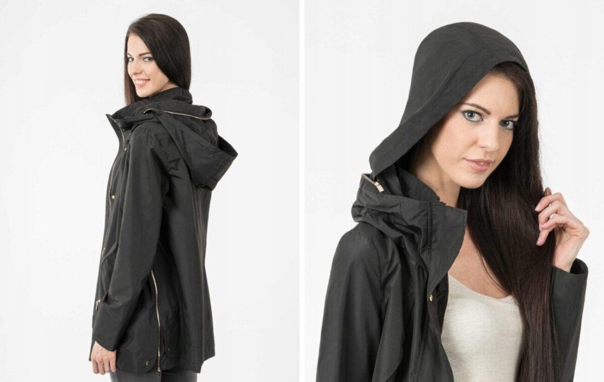 Elegancka kurtka damska, płaszczyk z kapturem