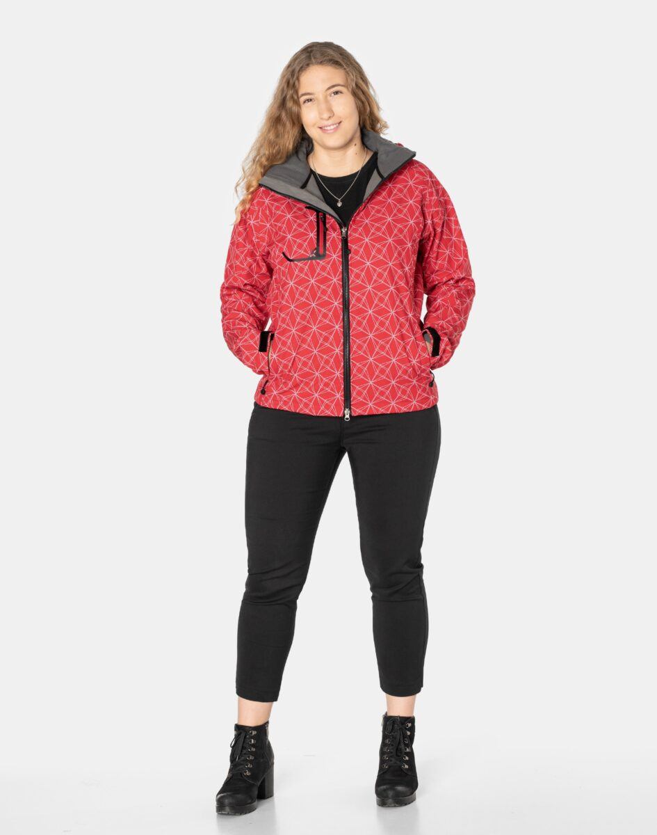 Kurtka jest wodoodporna, wiatroszczelna i zapinana jest w całości na zamek błyskawiczny. Aby uniknąć przenikania wody do wnętrza kurtki szwy i przeszycia zostały podklejone specjalną taśmą dzięki czemu są w 100% wodoszczelne. Praktyczny odpinany na zamek błyskawiczny i ocieplony mikropolarową podszewką kaptur posiada możliwość połączenia go z za pomocą rzepów z kołnierzem oraz regulacji jego wielkości i dopasowania Osłoni Twoją głowę przed deszczem, wiatrem i chłodem. Wysoki kołnierz/stójka skutecznie chroni podbródek i szyję a często zastępuje nawet szalik co jest bardzo wygodne. Kurtka posiada dwie kieszenie przednie na dłonie, zasuwane na wodoodporne zamki błyskawiczne. Na prawej piersi pojedyncza kieszeń zasuwana również na wodoodporny zamek. Wewnątrz dwie kieszenie naszywane. Ściągacze regulacyjne na dole kurtki oraz przy kapturze z gumką i stoperem, a w rękawach regulowane mankiety na rzepy pozwalają na precyzyjne dopasowanie kurtki do ciała, co znacznie zapobiega utracie ciepła i skutecznie chroni przed podmuchami wiatru. Wewnętrzna strona kurtki jest lekko ocieplona przyjazną dla ciała mikropolarową podszewką. Talia zgrabnie podkreślona doskonale wyprofilowana konstrukcja. Modny sportowy krój efektownie podkreślający kobiecą sylwetkę prezentowany obecnie szeroko na modowych blogach.