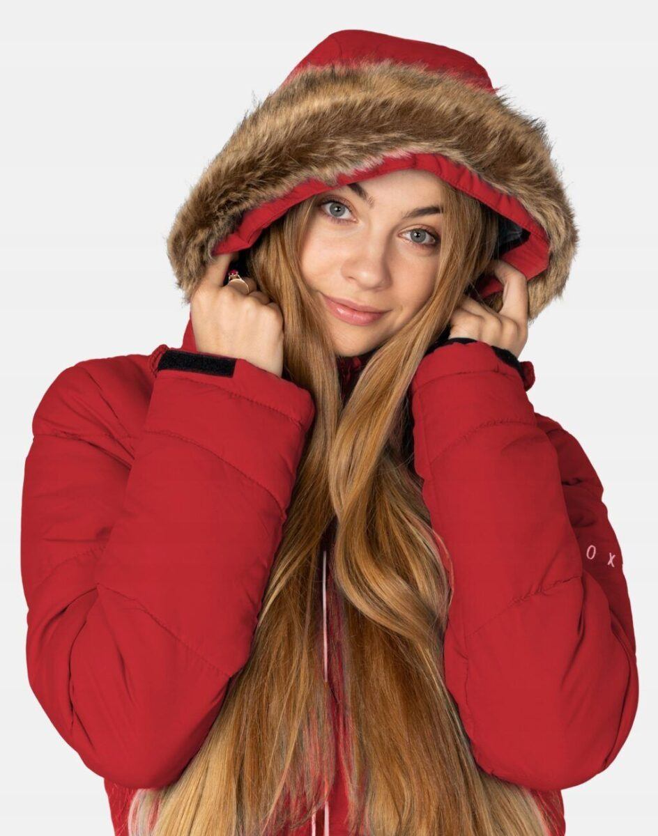 Kurtka narciarska damska Foxi-Club Ski wykonana w najnowszej technologii jak również według najnowszych trendów sportowej mody. Jest wyjątkowo ciepła bo ocieplona w całości puchem syntetycznym. Materiał na zewnątrz posiada wykończenie typu Water Repellency, które zapobiega nasączeniu warstwy zewnętrznej wodą. Kurtka termoaktywna „oddychająca” Foxi-Club Ski dzięki zastosowaniu specjalnej membrany utrzymuje ciepło wewnątrz i odprowadza nadmiar pary wodnej na zewnątrz. Skutecznie zabezpiecza użytkownika przed chłodem, wiatrem, deszczem, jest wodoodporna, elastyczna, a także odporna na działanie czynników atmosferycznych. Wspomaga generowanie i utrzymanie ciepła.