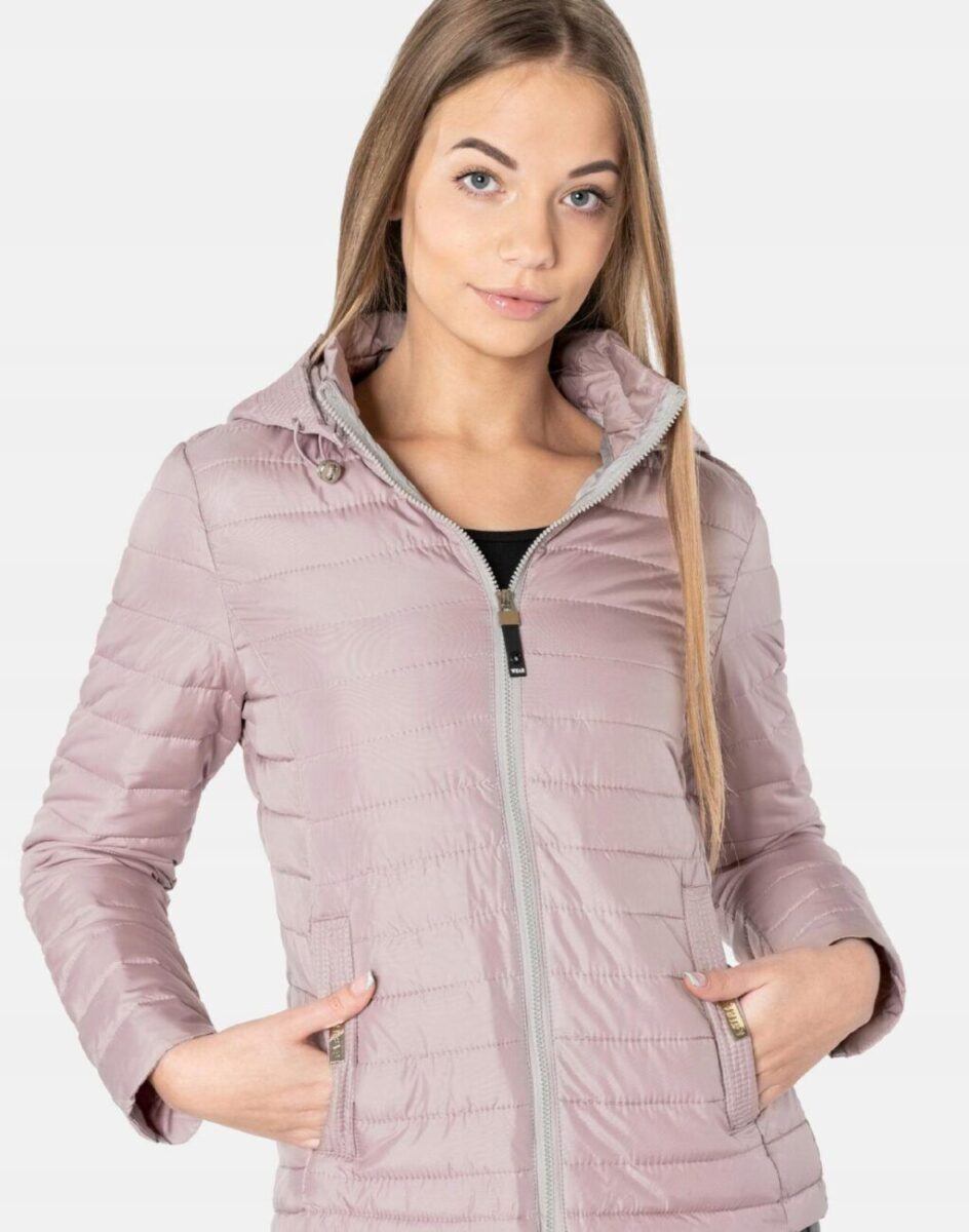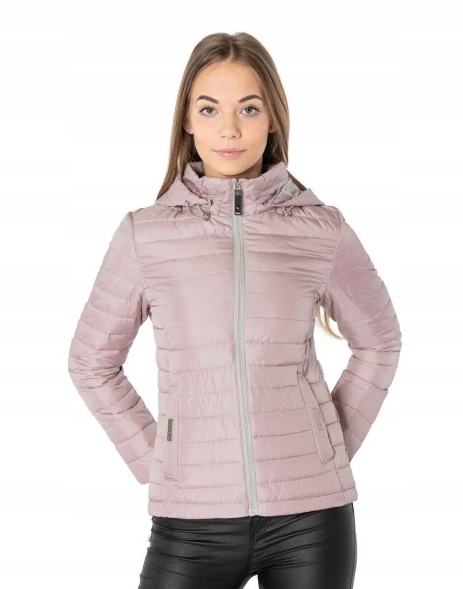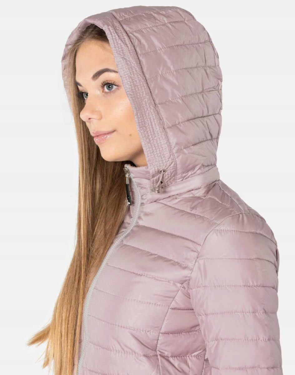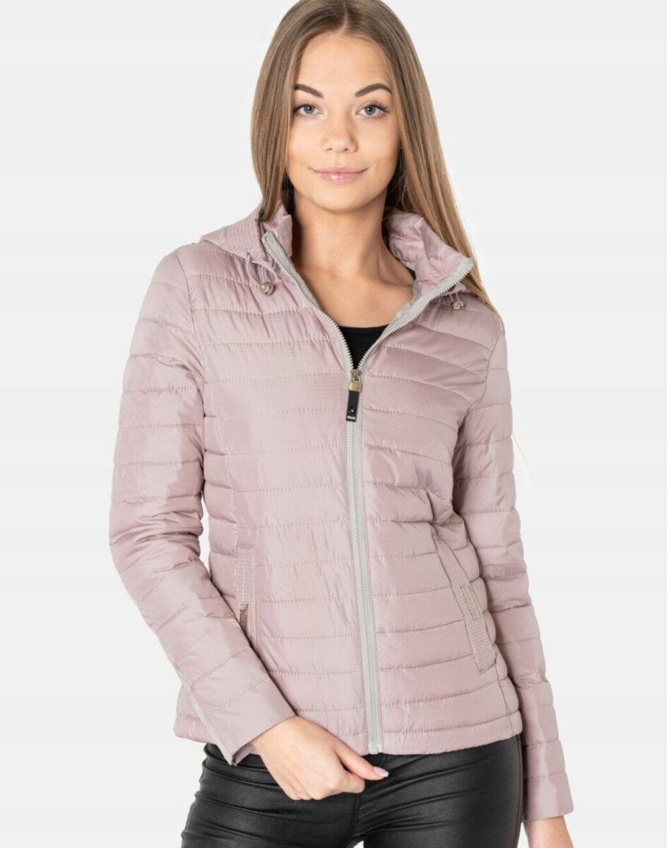Efektowna kurtka przejściowa damska pikowana z odpinanym kapturem