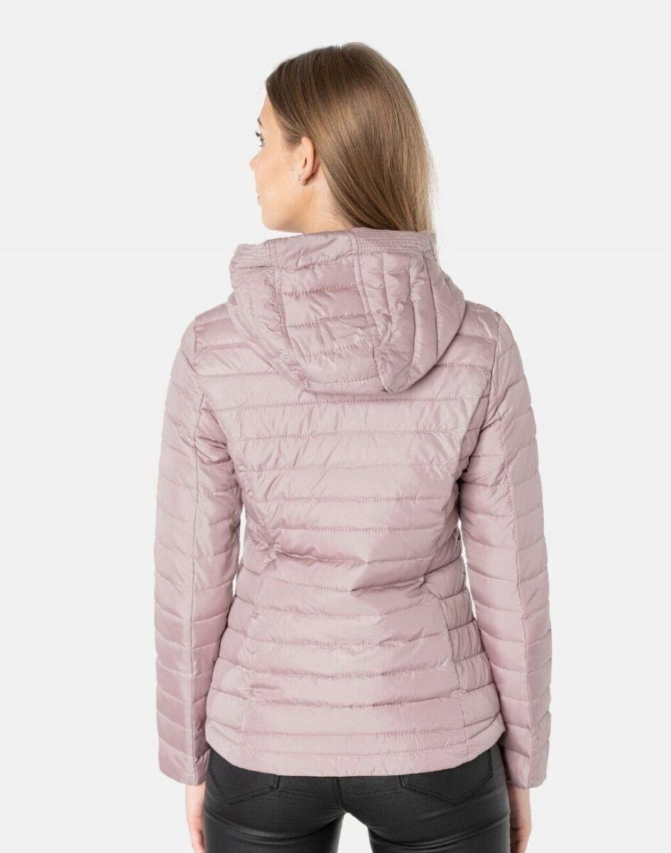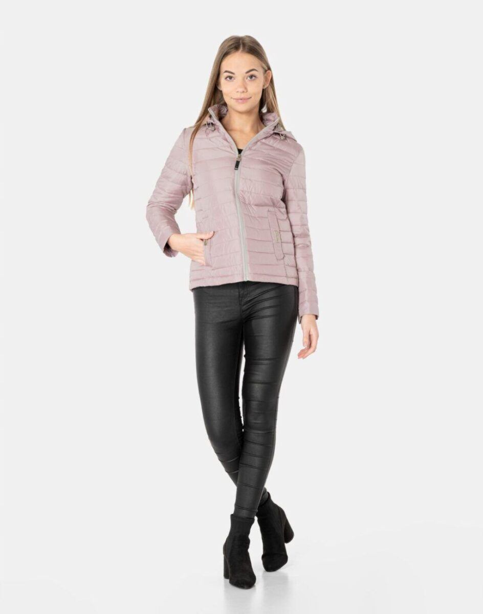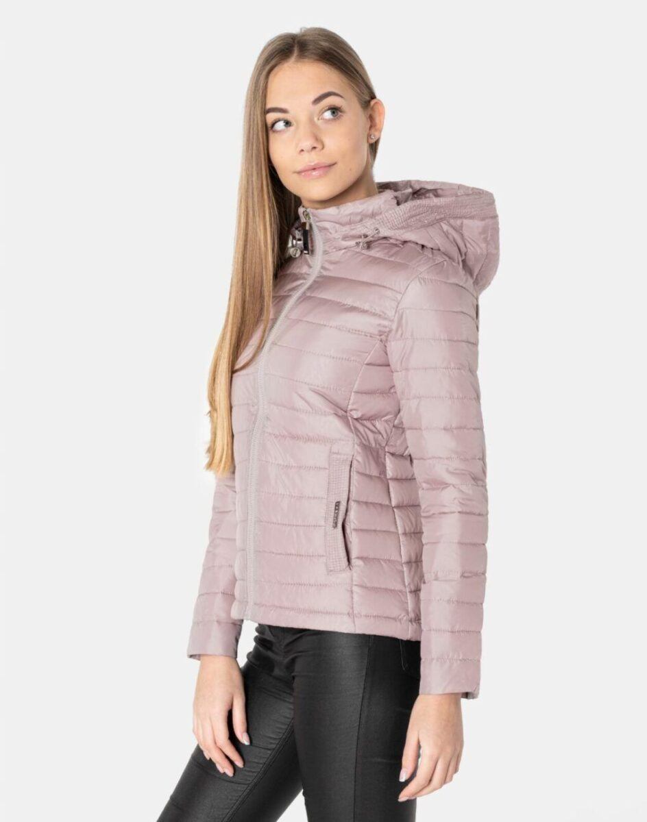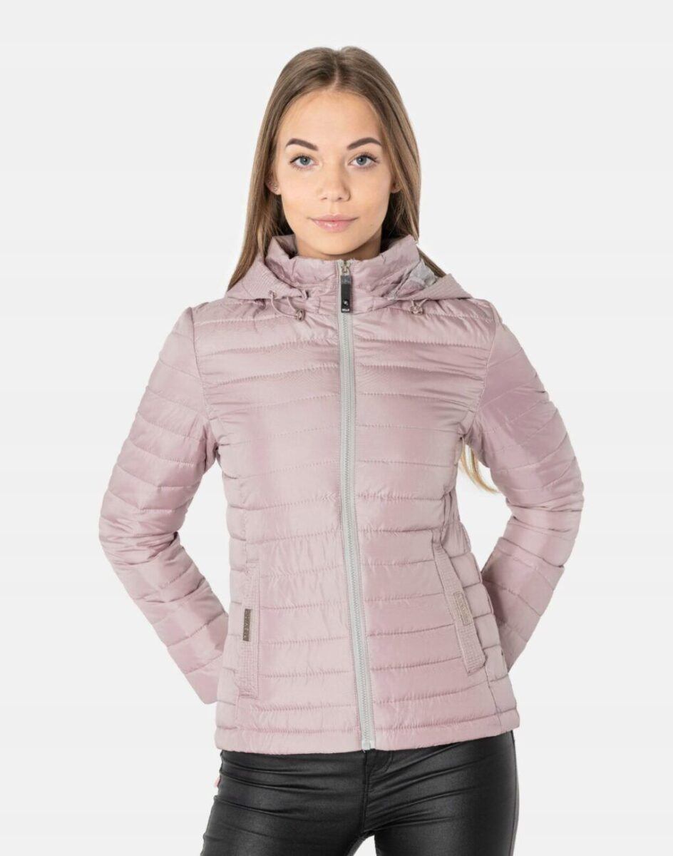 Efektowna kurtka przejściowa damska pikowana z odpinanym kapturem