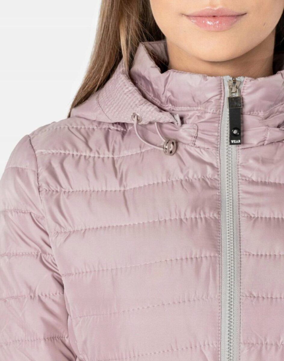 - Fason: puchowa, pikowana ze stójką i odpinanym kapturem
