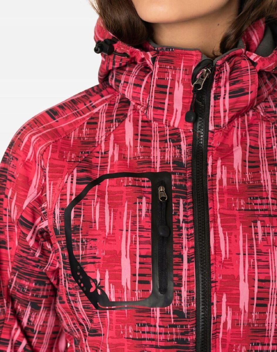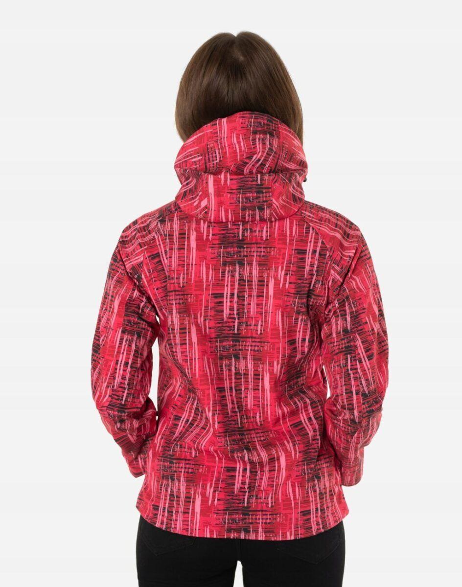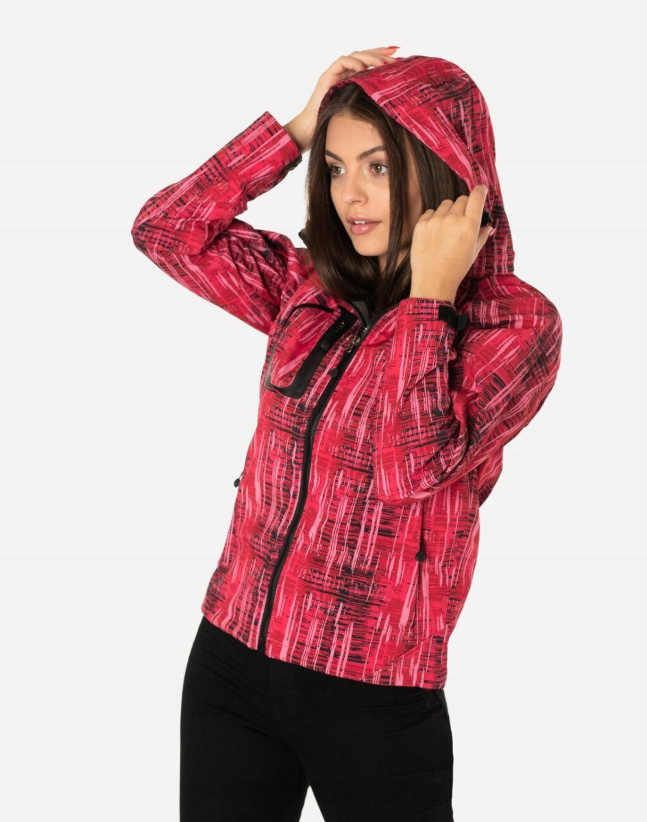 Softshell jest tkaniną składającą się z trzech warstw. Materiał na zewnątrz posiada wykończenie typu Water Repellency, który zapobiega nasączeniu warstwy zewnętrznej wodą. Wewnętrzna strona materiału utrzymująca ciepło to mikropolar. Oddychająca membrana umieszczona pomiędzy warstwą zewnętrzną, a wewnętrzną umożliwia odprowadzanie wilgoci na zewnątrz. Materiał zewnętrzny jest wiatroszczelny (WINDPROOF ), wodoodporny (WATERPROOF) i oddychający (BREATHABLE). Aby uniknąć przenikania wody do wnętrza kurtki krytyczne szwy mają podwójne przeszycia i są dodatkowo klejone od wewnątrz, dzięki czemu są w 100% wodoszczelne. Klejone taśmy uszczelniają szwy i mikrootwory powstałe w tkaninie podczas szycia, czyli miejsca najbardziej narażone na przemoknięcia. Kurtka zasuwana jest na zamek błyskawiczny zakończony ochroną podbródka co redukuje ryzyko powstania ewentualnych podrażnień. Praktyczny odpinany na zamek błyskawiczny i ocieplony mikropolarem kaptur posiada możliwość połączenia go za pomocą rzep z kołnierzem oraz regulacji jego wielkości i dopasowania 3D. Skutecznie osłoni Twoją głowę przed deszczem, wiatrem i chłodem. Wysoki kołnierz/stójka chroni podbródek i szyję, a często zastępuje nawet szalik co jest bardzo wygodne. Kurtka posiada dwie kieszenie przednie na dłonie, zasuwane na kryte zamki błyskawiczne oraz pionową kieszeń na prawej piersi zasuwaną na zamek błyskawiczny. Wewnątrz jedna naszywana kieszeń na telefon kom./MP3/MP4/okulary//dokumenty itp. zasuwana również na zamek. Ściągacze regulacyjne na dole kurtki oraz przy kapturze z gumką i stoperem, a w rękawach regulowane mankiety na rzepy pozwalają na precyzyjne dopasowanie kurtki do ciała, co znacznie zapobiega utracie ciepła i skutecznie chroni przed podmuchami wiatru. Wewnętrzna strona kurtki jest lekko ocieplona przyjaznym dla ciała mikropolarem. Talia zgrabnie podkreślona doskonale wyprofilowana konstrukcja. Modny sportowy krój efektownie podkreślający kobiecą sylwetkę prezentowany obecnie szeroko na modowych blogach.