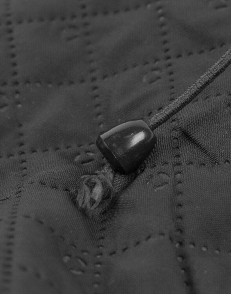 Kurtka jest modnie pikowana i zasuwana w całości na zamek błyskawiczny. Posiada dwie, wpuszczane, kieszenie na dłonie po bokach kurtki, praktyczny regulowany i odpinany kaptur, oraz wysoki kołnierz/stójkę zasłaniający szyję i chroniący gardło, a często zastępujący nawet szalik, co jest bardzo wygodne i skutecznie chroni przed zimnem i wiatrem.