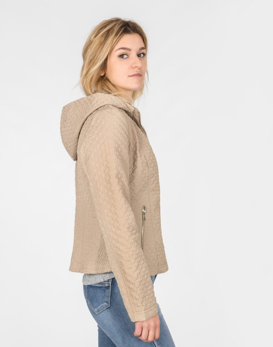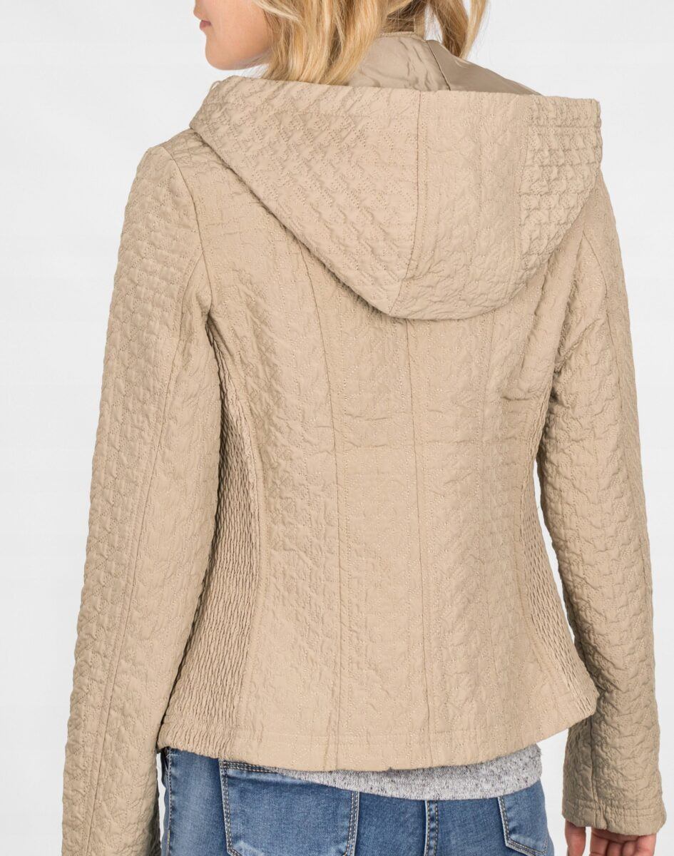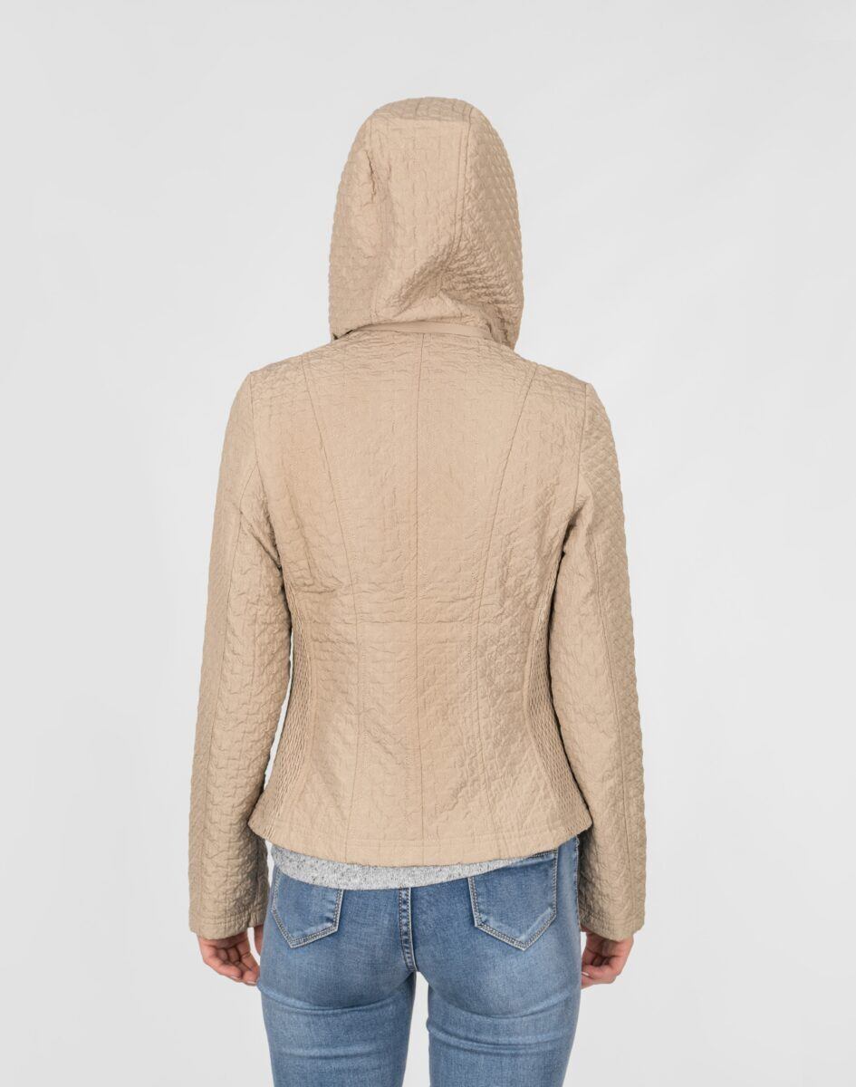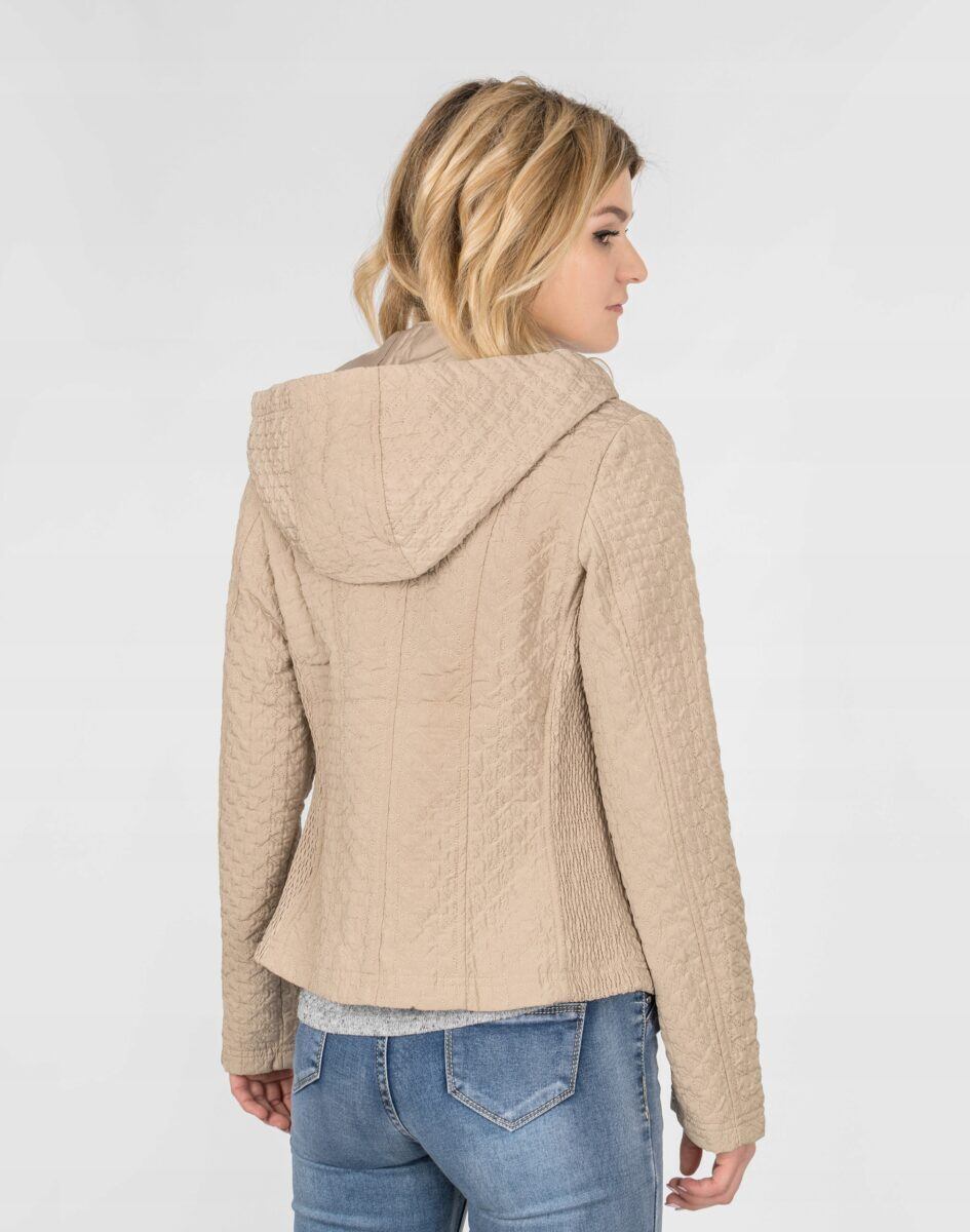 Pikowana lekka kurtka damska przekonująca efektownym, dopasowanym fasonem, zgrabnie podkreślającym kobiecą sylwetkę. Modnie pikowana, zasuwana w całości na zamek błyskawiczny. Po bokach dwie wpuszczane kieszenie na dłonie zasuwane na zamki. Posiada praktyczny odpinany kaptur. Wewnętrzna strona na materiałowej podszewce.