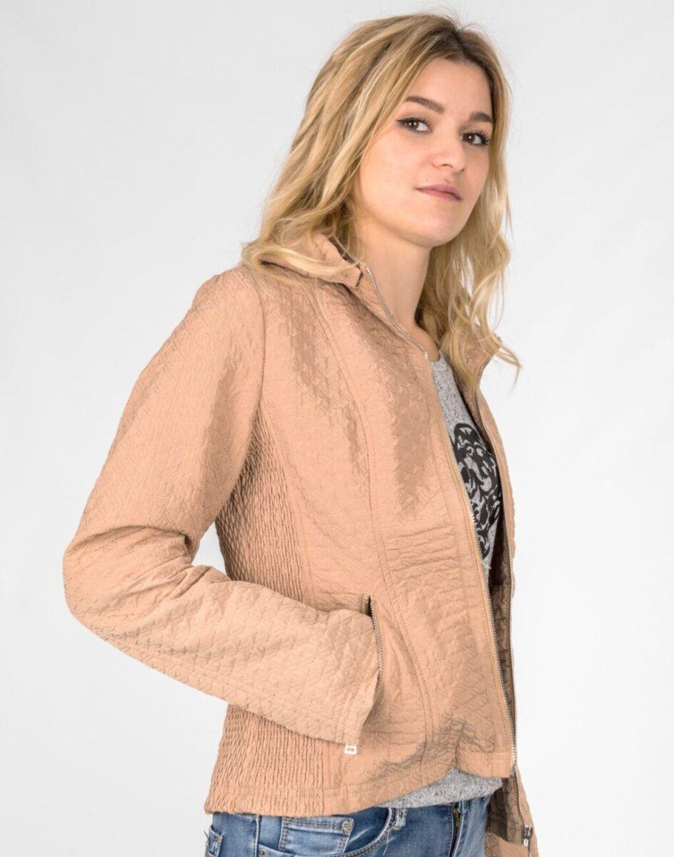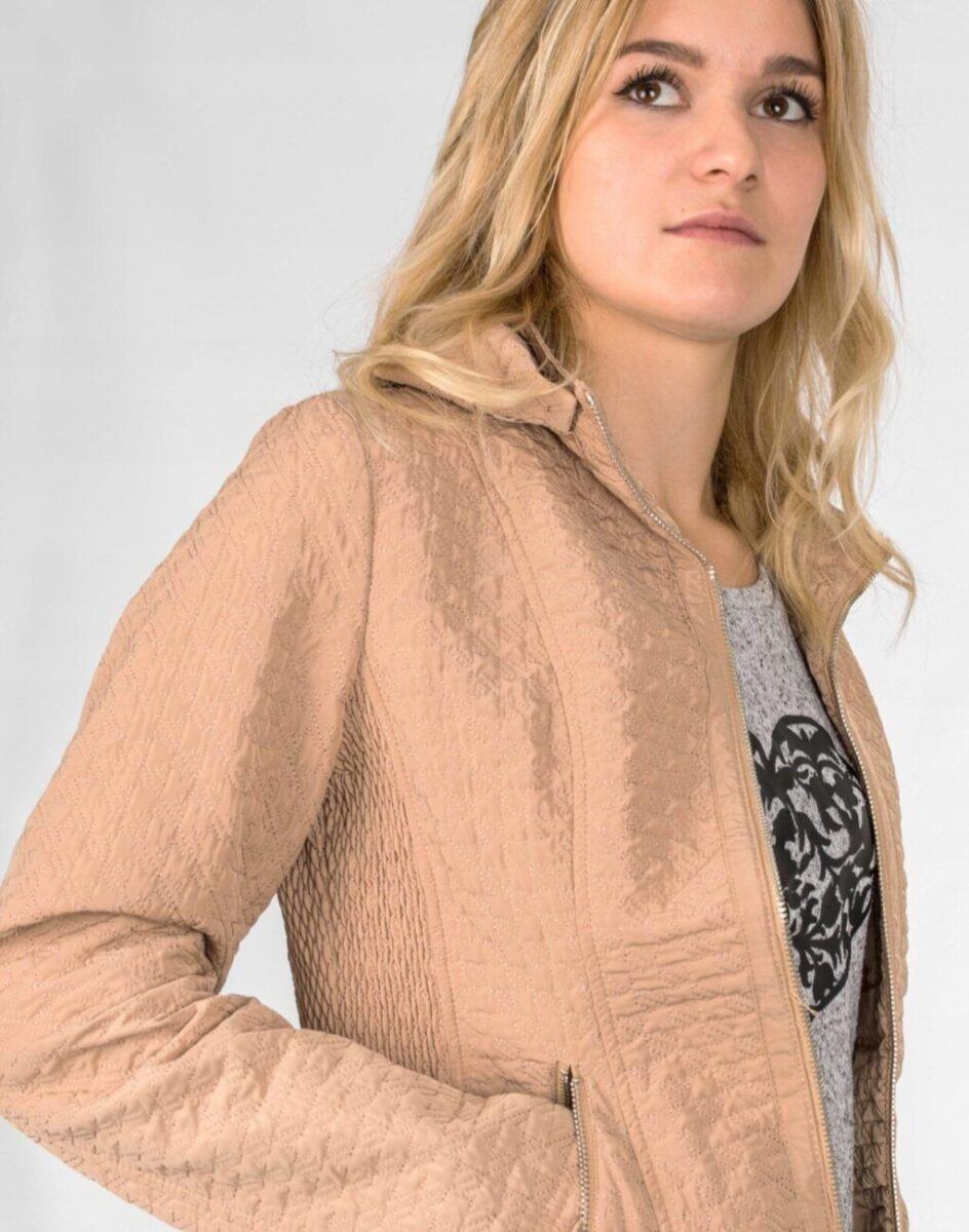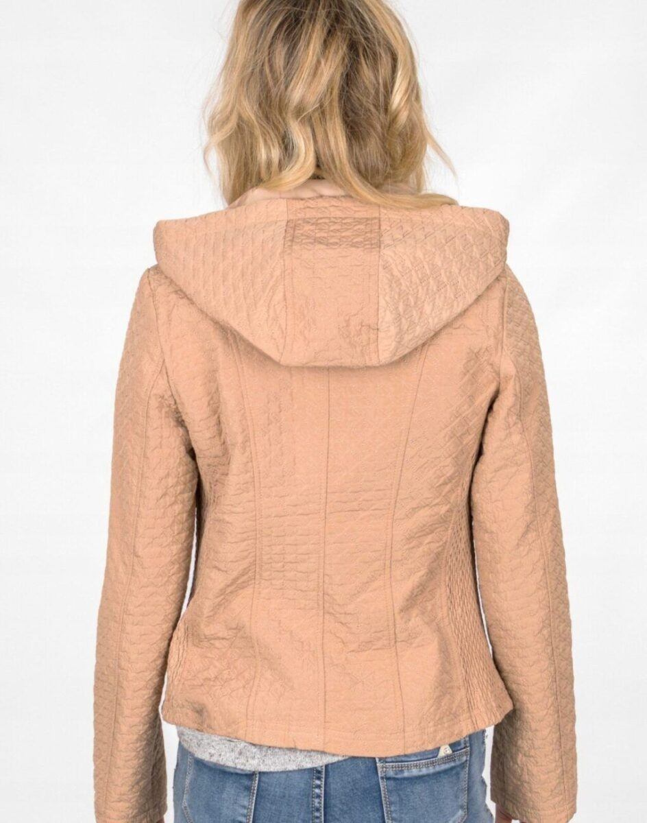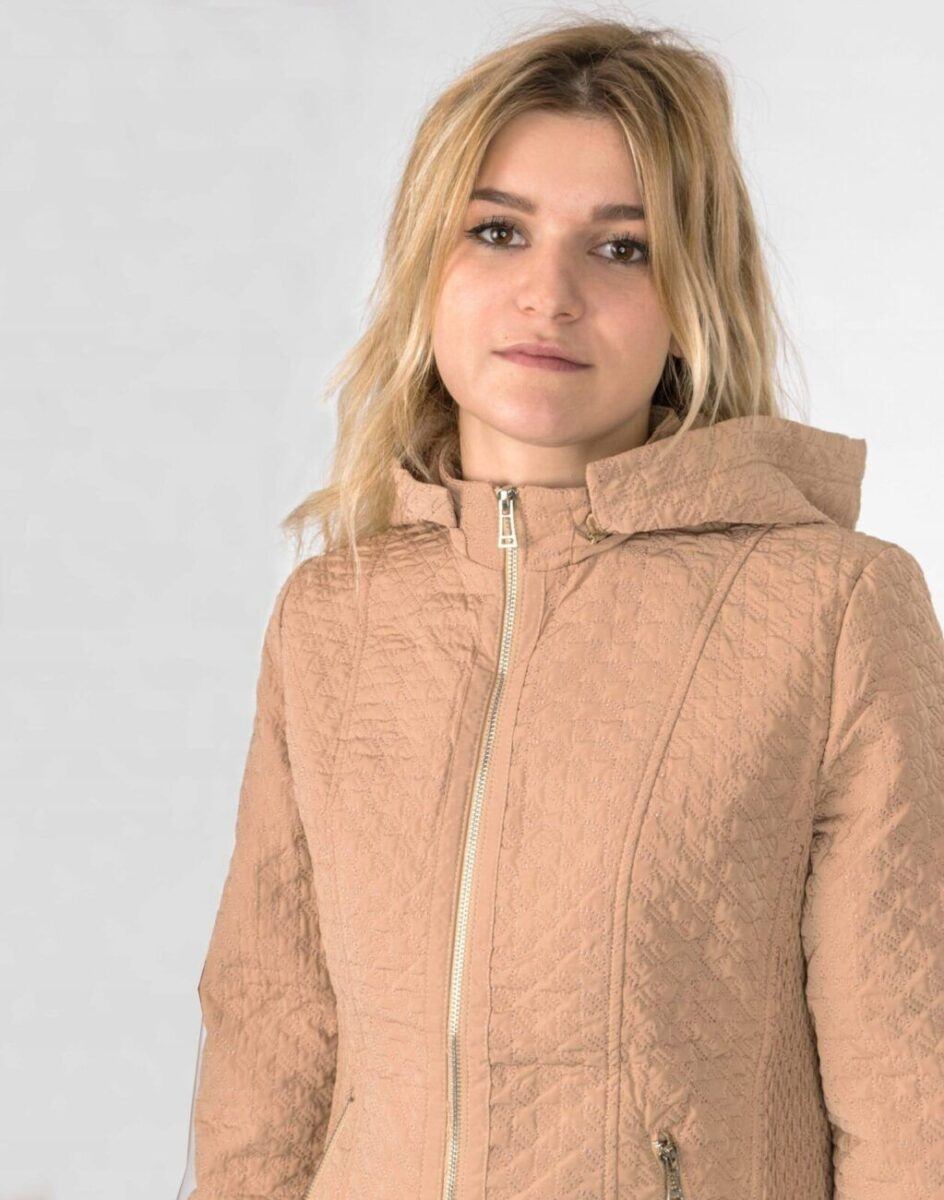 Pikowana lekka kurtka damska przekonująca efektownym, dopasowanym fasonem, zgrabnie podkreślającym kobiecą sylwetkę. Modnie pikowana, zasuwana w całości na zamek błyskawiczny. Po bokach dwie wpuszczane kieszenie na dłonie zasuwane na zamki. Posiada praktyczny odpinany kaptur. Wewnętrzna strona na materiałowej podszewce.
