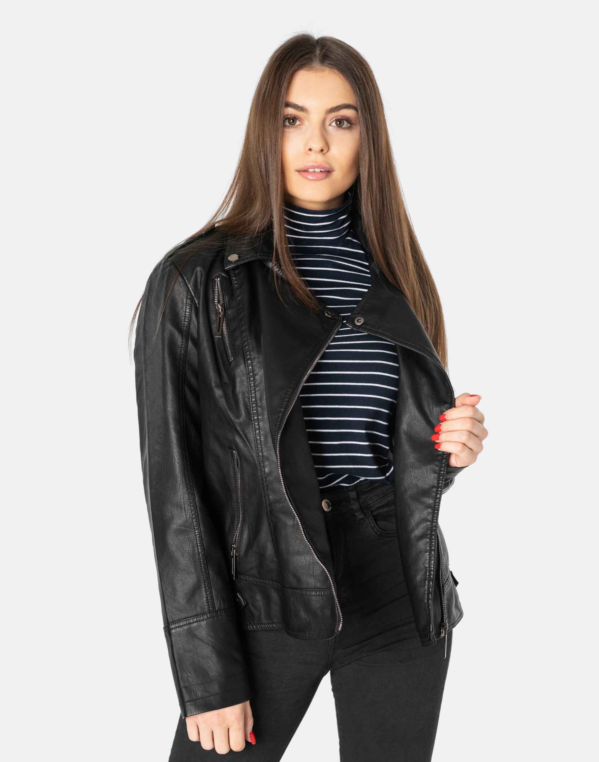 Efektowna skórzana kurtka typu Ramoneska