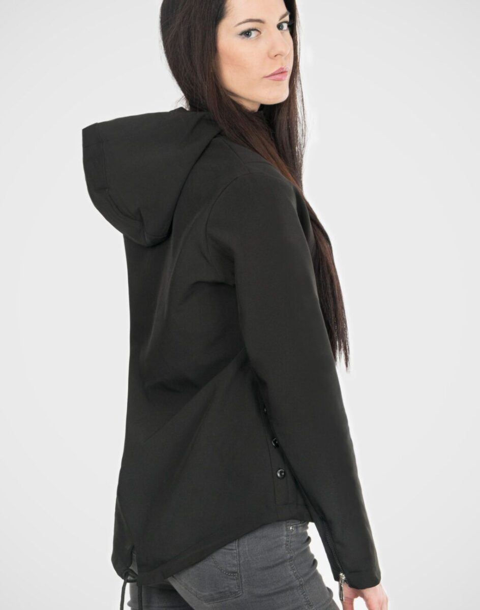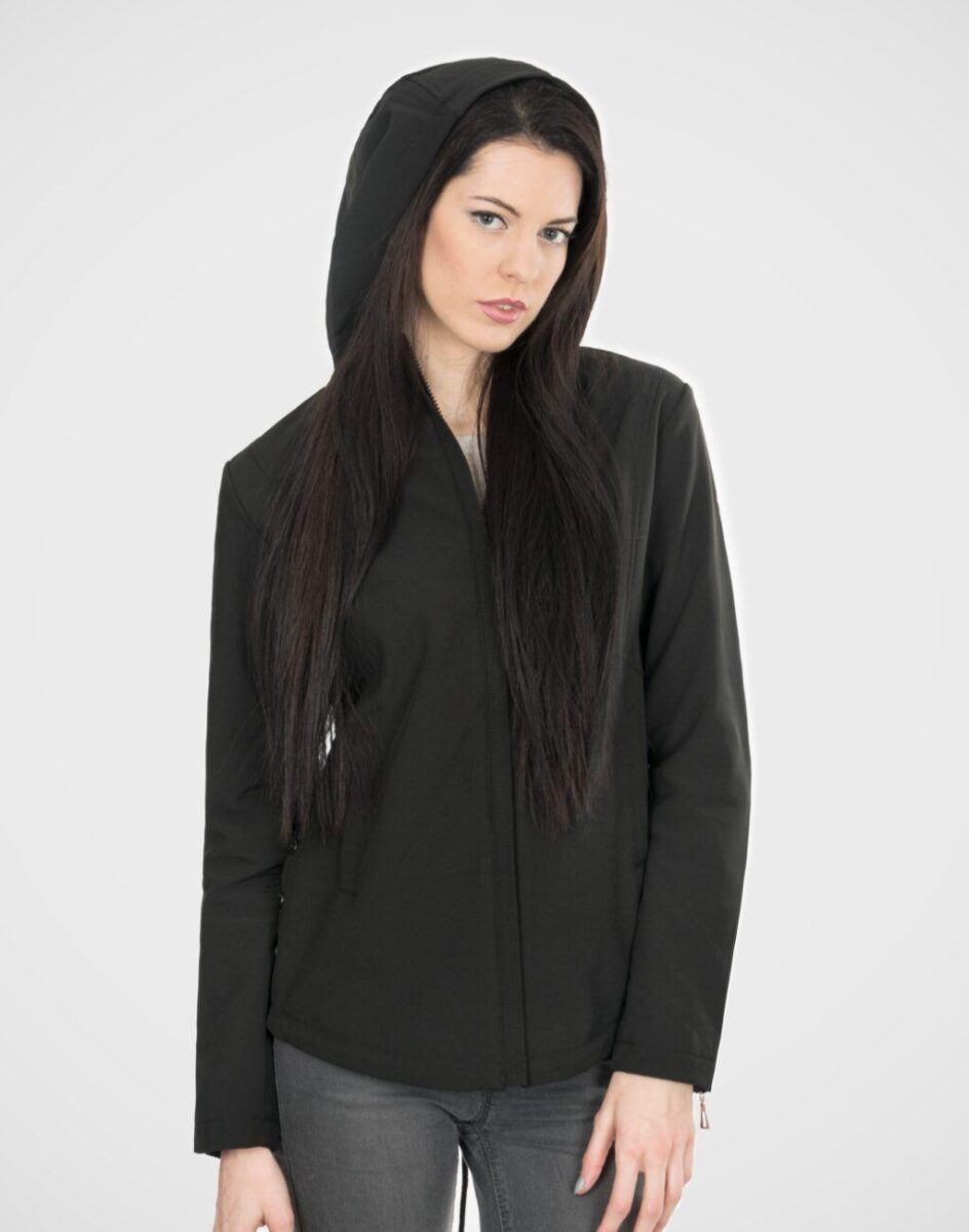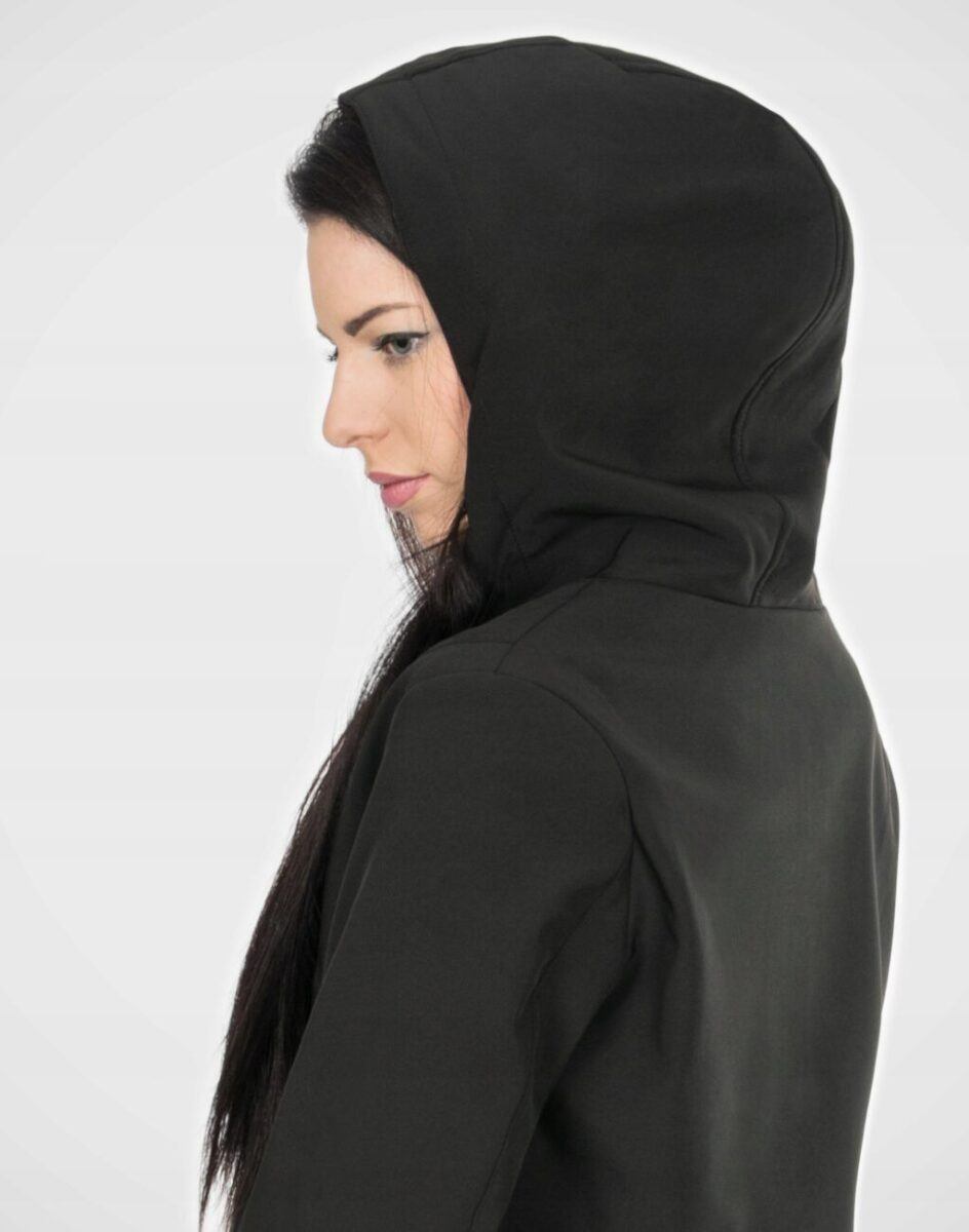 Kurtka termoaktywna „oddychająca” dzięki zastosowaniu specjalnej membrany utrzymuje ciepło wewnątrz i odprowadza nadmiar pary wodnej na zewnątrz. Materiał na zewnątrz posiada wykończenie typu Water Repellency który zapobiega nasączeniu warstwy zewnętrznej wodą. Zapinana jest w całości na zamek błyskawiczny kryty ozdobną plisą. Wysoki kołnierz/stójka chroni podbródek i szyję przed zimnem i wiatrem. Posiada dwie kieszenie przednie na dłonie. Przedłużony tył kurtki z powodzeniem zakrywa części ciała wrażliwe na chłód jak plecy na wysokości nerek i pośladki. Regulowana szerokość dołu kurtki umożliwia jej indywidualne dopasowanie. Szerokość rękawów regulowana jest za pomocą zamków błyskawicznych. Praktyczny kaptur chroni głowę przed zimnem i wiatrem. Wewnętrzna strona kurtki wykończona jest materiałową podszewką. Talia zgrabnie podkreślona i doskonale wyprofilowana konstrukcja efektownie podkreślająca kobiecą sylwetkę. Kurtka skutecznie zabezpiecza użytkownika przed wiatrem, jest wodoodporna, elastyczna, a także odporna na działanie czynników atmosferycznych.