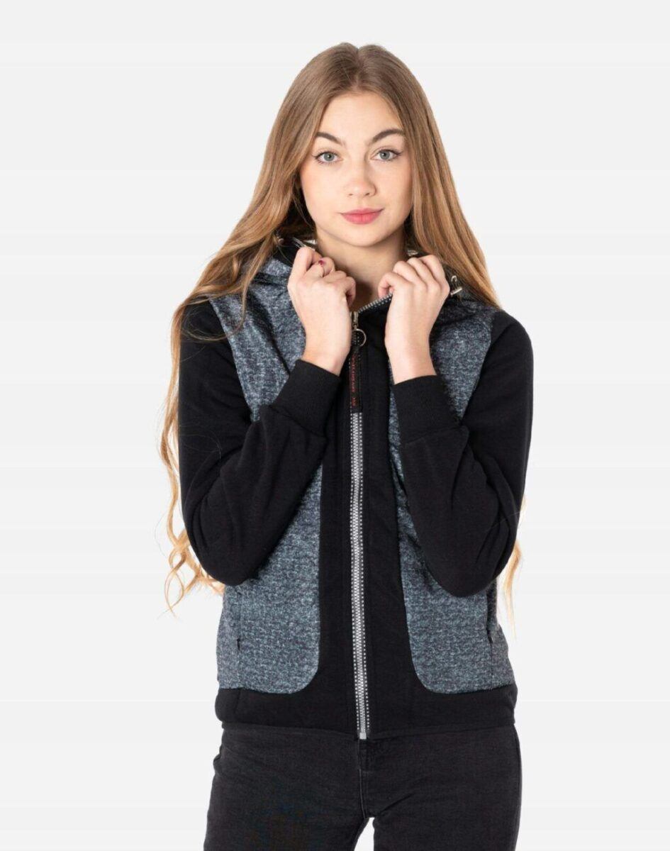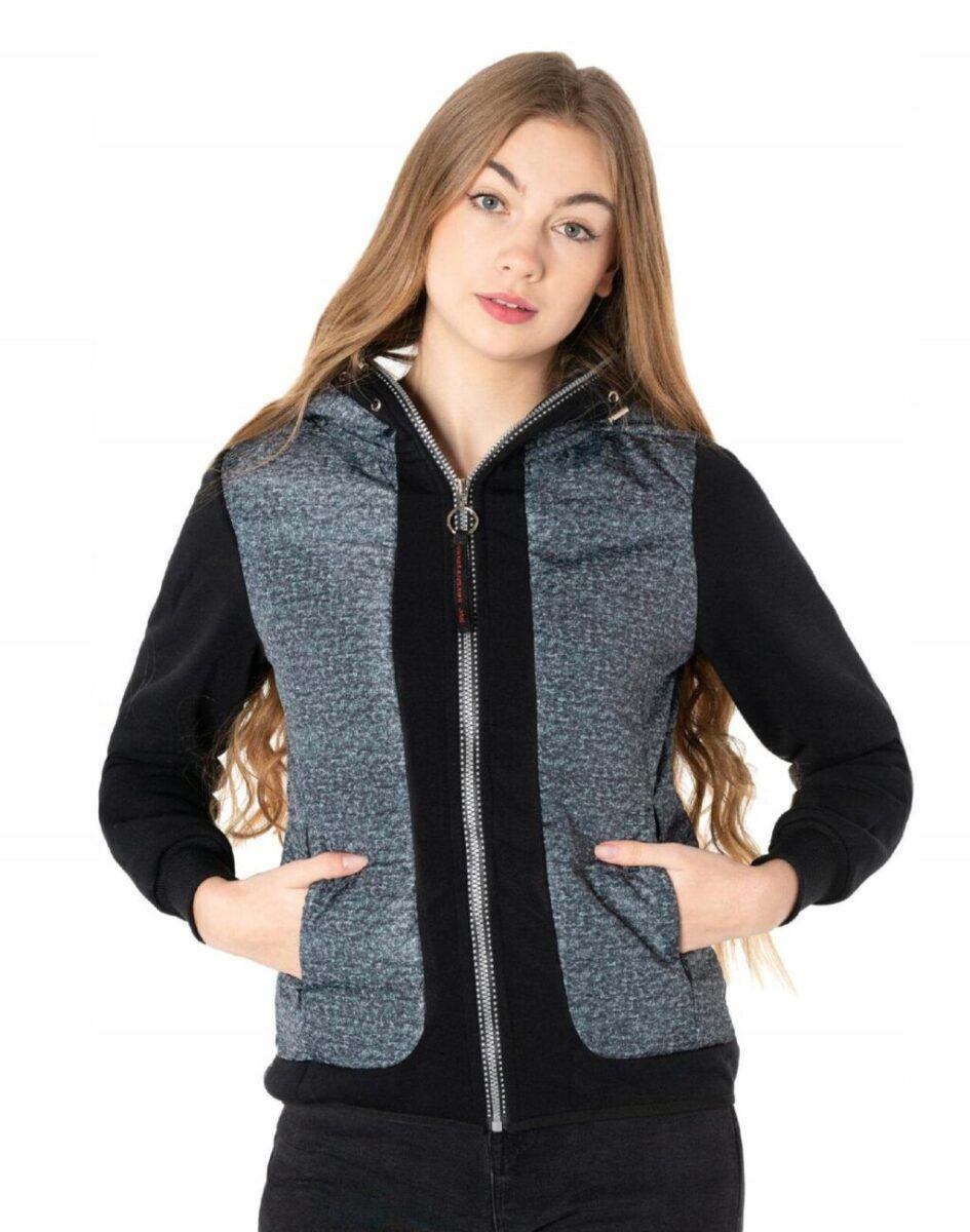 Sportowa Bluza Damska Zasuwana na Zamek z Efektownym Podwójnie Ocieplonym Kapturem