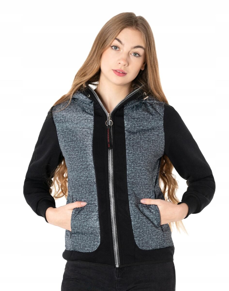 Znakomicie sprawdzi się w chłodniejsze dni a praktyczny podwójnie ocieplony puchem syntetycznym i bawełnianą podszewką kaptur skutecznie ochroni Twoją głowę przed deszczem, wiatrem i chłodem. Bluza jest unikalnym połączeniem wysokiej jakości tkaniny bawełnianej (rękawy) i tkaniny poliestrowej (pozostała część bluzy), zapewniając wygodę i komfort termiczny użytkowania, nawet w mniej sprzyjających warunkach pogodowych. Tkanina poliestrowa jest 100% wiatroszczelna i posiada wykończenie typu Water Repellency, które zapobiega nasączeniu warstwy zewnętrznej wodą. Bluza jest lekko ocieplona puchem syntetycznym i zasuwana w całości wraz z kapturem na zamek błyskawiczny. Posiada dwie wpuszczane kieszenie na dłonie zasuwane na kryte zamki błyskawiczne. Dół bluzy oraz rękawy zakończone są elastycznym ściągaczem co pozwala na precyzyjne dopasowanie do ciała i zapobiega utracie ciepła. Wewnętrzna strona bluzy wykończona jest materiałową podszewką. Długość midi, która z powodzeniem zakrywa części ciała wrażliwe na chłód jak plecy na wysokości nerek i pośladki. Fason dostosowany do kobiecej budowy ciała doskonale wyprofilowana konstrukcja efektownie podkreślająca kobiecą sylwetkę. Modny układ pikowanych, lekko ocieplonych, wiatroszczelnych i wodoodpornych paneli został efektownie połączony z bawełnianymi rękawami tworząc najmodniejszy obecnie styl prezentowany szeroko na modowych blogach.