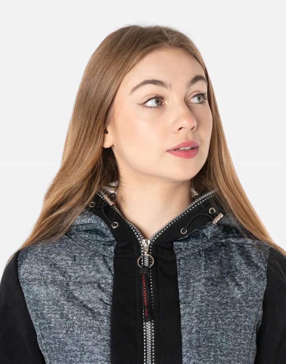 Sportowa Bluza Damska Zasuwana na Zamek z Efektownym Podwójnie Ocieplonym Kapturem