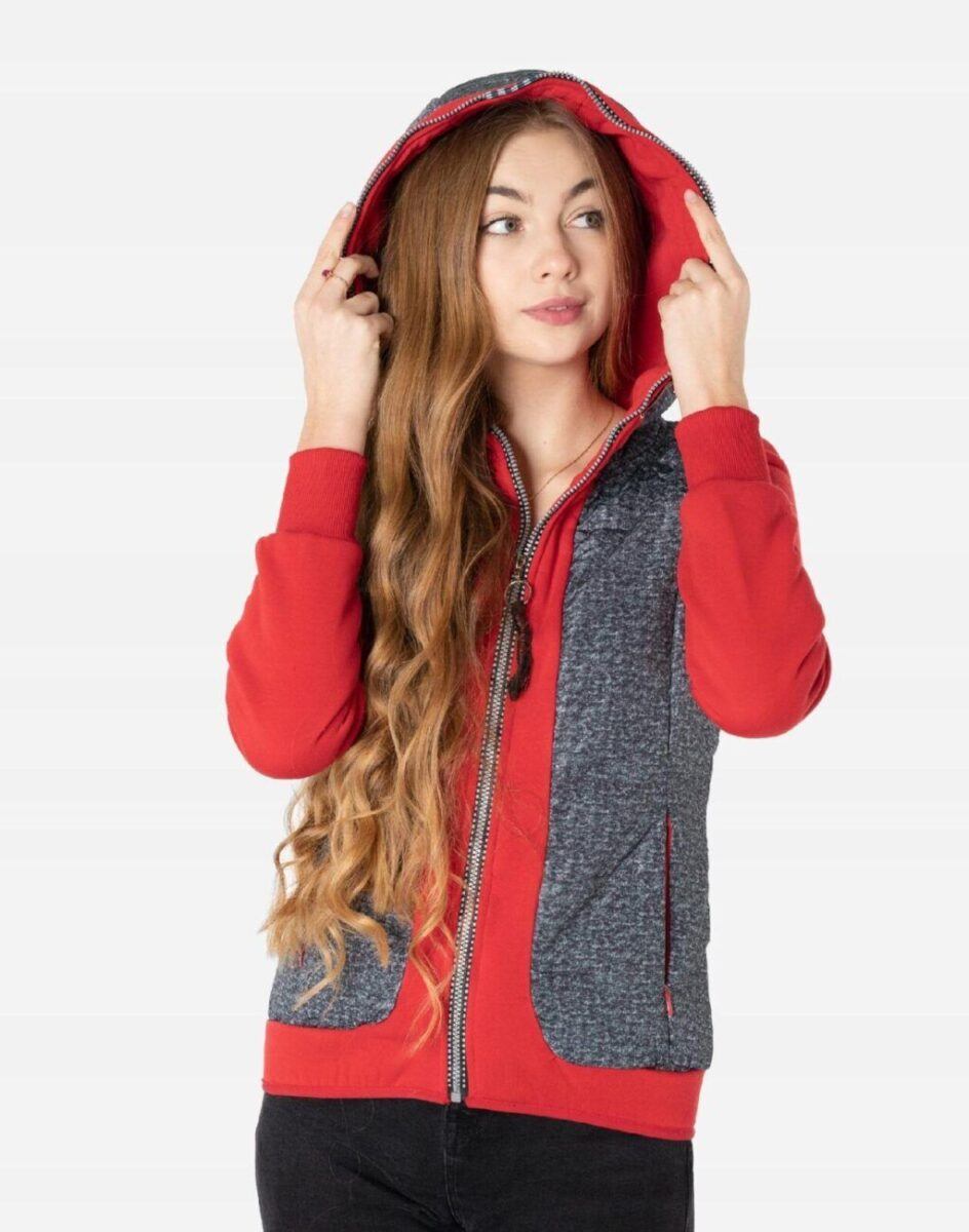 Sportowa Bluza Damska Zasuwana na Zamek z Efektownym Podwójnie Ocieplonym Kapturem