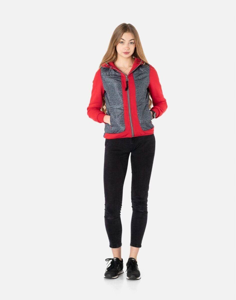 Znakomicie sprawdzi się w chłodniejsze dni a praktyczny podwójnie ocieplony puchem syntetycznym i bawełnianą podszewką kaptur skutecznie ochroni Twoją głowę przed deszczem, wiatrem i chłodem. Bluza jest unikalnym połączeniem wysokiej jakości tkaniny bawełnianej (rękawy) i tkaniny poliestrowej (pozostała część bluzy), zapewniając wygodę i komfort termiczny użytkowania, nawet w mniej sprzyjających warunkach pogodowych. Tkanina poliestrowa jest 100% wiatroszczelna i posiada wykończenie typu Water Repellency, które zapobiega nasączeniu warstwy zewnętrznej wodą. Bluza jest lekko ocieplona puchem syntetycznym i zasuwana w całości wraz z kapturem na zamek błyskawiczny. Posiada dwie wpuszczane kieszenie na dłonie zasuwane na kryte zamki błyskawiczne. Dół bluzy oraz rękawy zakończone są elastycznym ściągaczem co pozwala na precyzyjne dopasowanie do ciała i zapobiega utracie ciepła. Wewnętrzna strona bluzy wykończona jest materiałową podszewką. Długość midi, która z powodzeniem zakrywa części ciała wrażliwe na chłód jak plecy na wysokości nerek i pośladki. Fason dostosowany do kobiecej budowy ciała doskonale wyprofilowana konstrukcja efektownie podkreślająca kobiecą sylwetkę. Modny układ pikowanych, lekko ocieplonych, wiatroszczelnych i wodoodpornych paneli został efektownie połączony z bawełnianymi rękawami tworząc najmodniejszy obecnie styl prezentowany szeroko na modowych blogach.